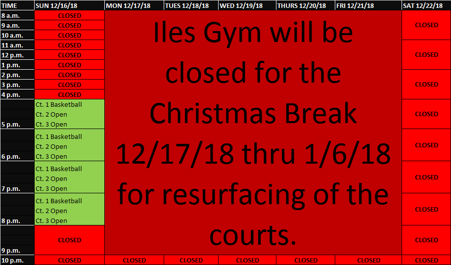 The gymnasium is closed when in use for classes or other events (See weekly schedule below). Current Students and Staff only.