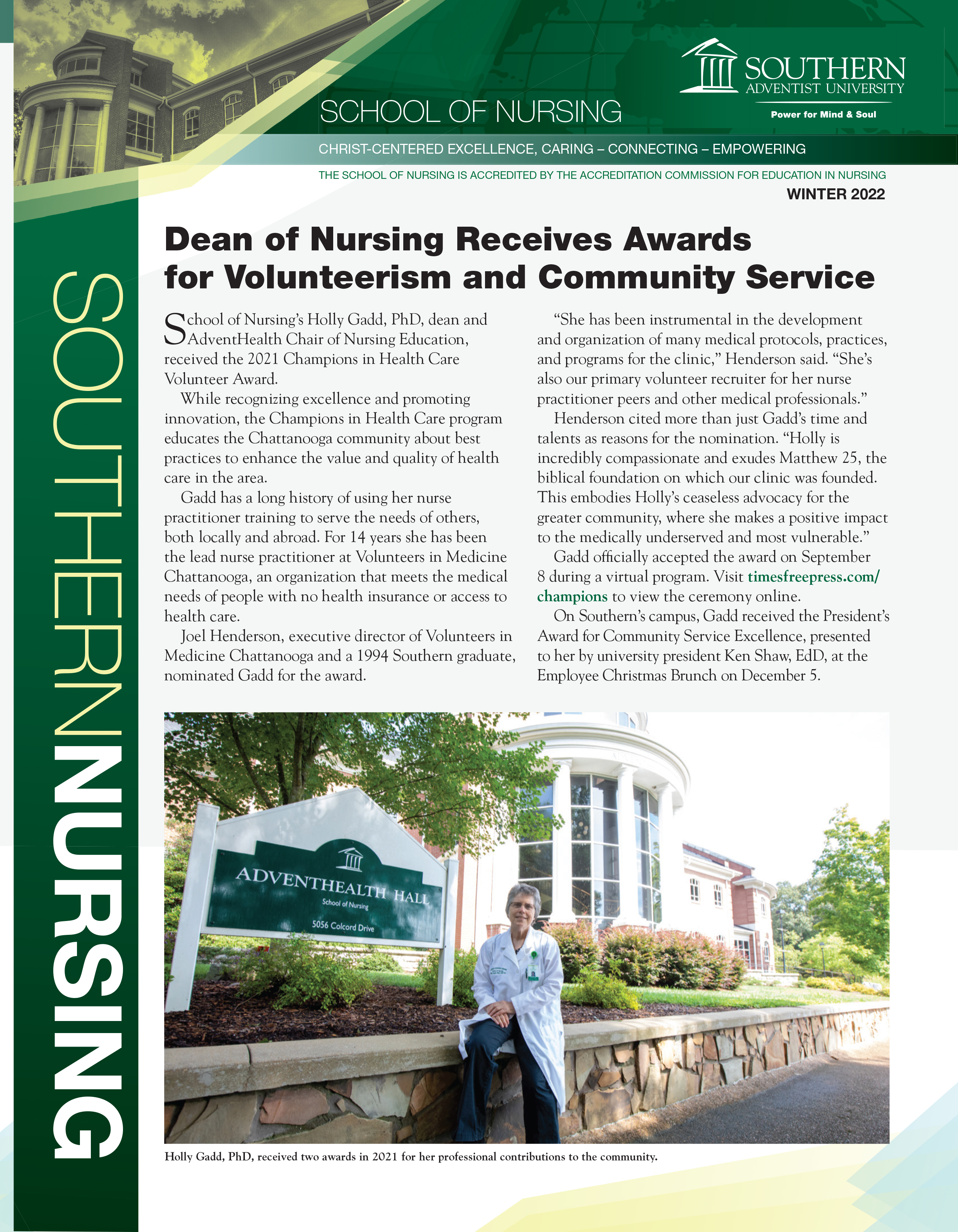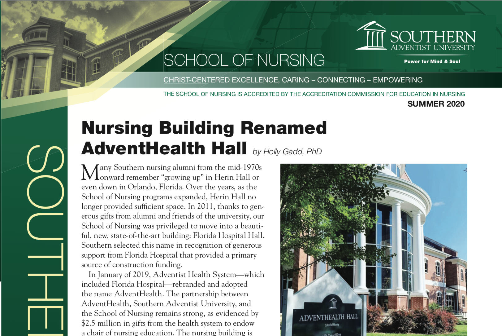 Southern Adventist University's School of Nursing is located in Collegedale, Tennessee