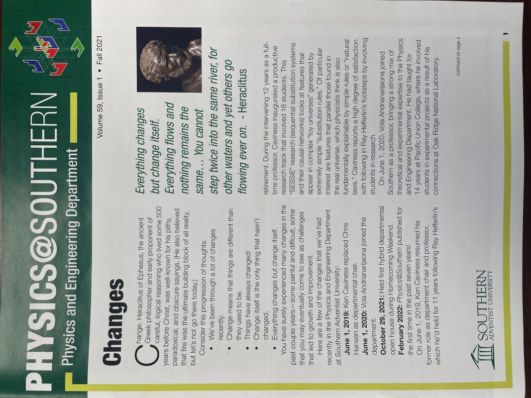 The Physics@Southern Newsletter is a tradition the Physics department has produced for the last several years. It is a periodic newsletter that includes updates, current research, and more.