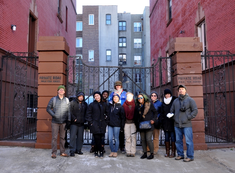 Students participate in a walking tour of Harlem.