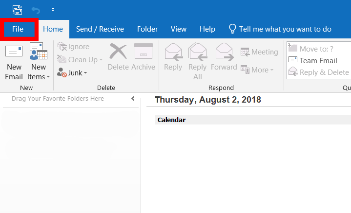 You should now see a banner that reads "Account Information." In the underneath the account information, if you do not see "Microsoft Exchange" listed as the account type as in below, you need to follow our tutorial on adding an exchange account to Outlook here.