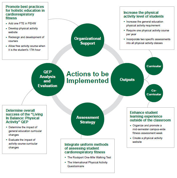 - Require baccalaureate-degree students to take four activity courses (including PEAC 125–Fitness for College and PEAC 425–Fit for Hire) and a two-hour health science course (HLED 173–Health for Life or HLNT 130–Nutrition for Life), for a total of 6 hours