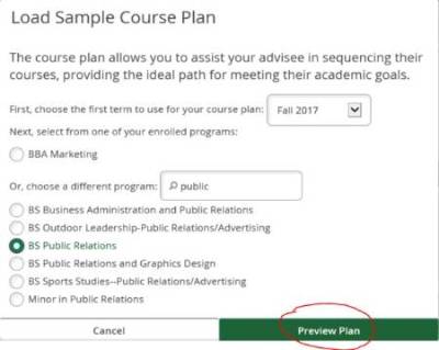 When this window below appears, choose the term you are starting in and the major that you are planning to pursue. Then click 'Preview Plan'.