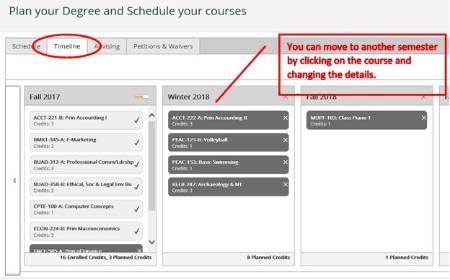 The timeline feature of Student Planning allows you to manage your semester by semester plan of courses towards graduation.