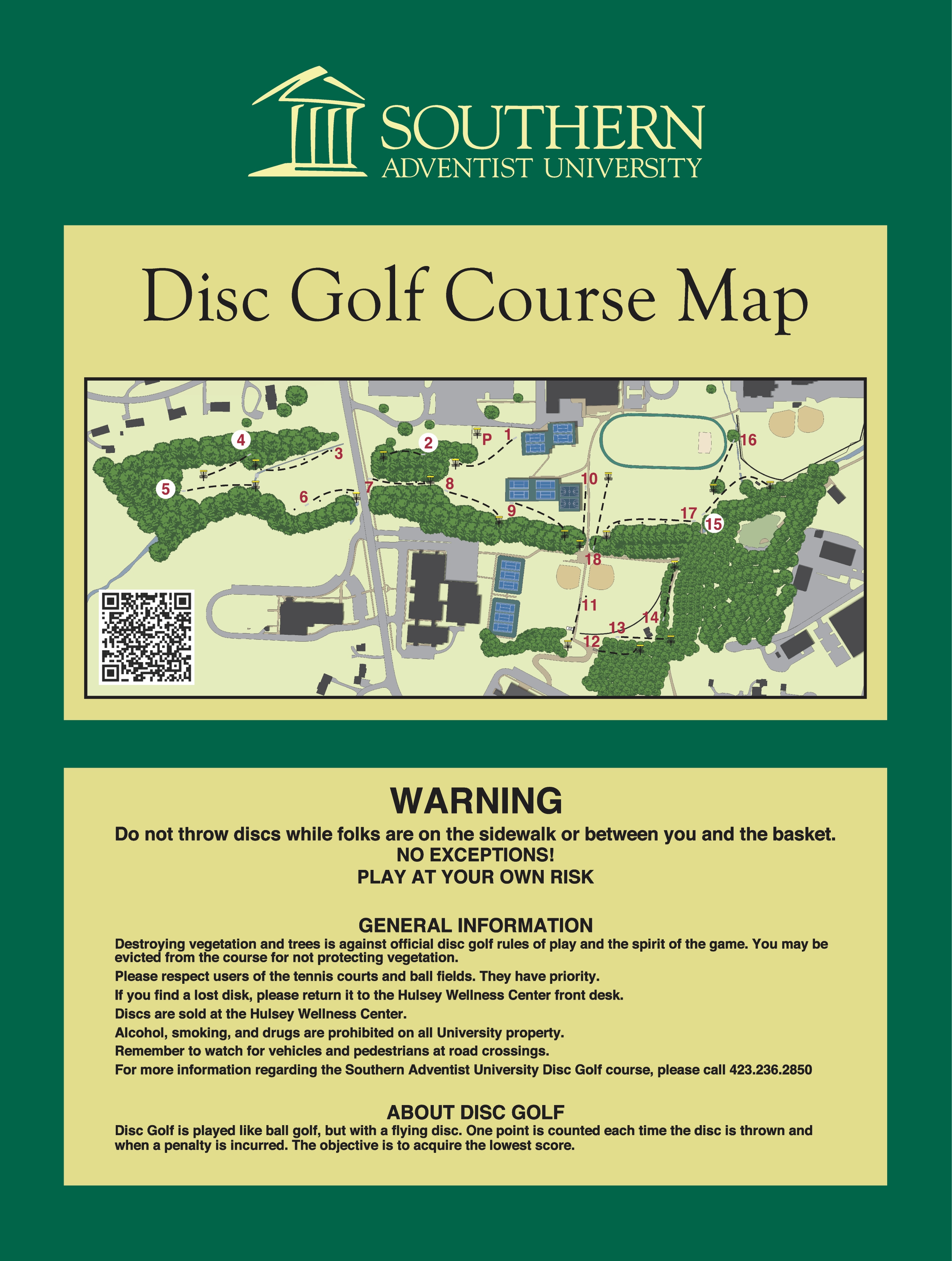 LOCATION: Practice Hole and Hole 1 are located behind the Hulsey Wellness Center by the Upper Tennis Courts