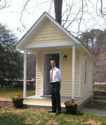 After being relocated this past year to a new green space between Lynn Wood and Daniells Halls, Chris Carey, vice president for Advancement, moved his office into the 7-by-14 foot Doll House until construction begins on the new student life center, which is an essential part of the university's strategic plans. During a recent open-house event, students and alumni were able to enjoy old-fashioned cookies and lemonade while learning about the building’s history.
