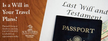 Summer is just around the corner, and vacation travel plans will soon be reality for many. As part of your travel preparations, consider a review of your current estate plans or contact Planned Giving at Southern to begin this important process.