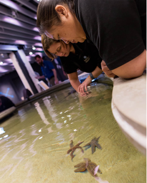 Living Seashore is a hands-on exhibit that gives visitors a chance to uncover the mysteries of the Mid-Atlantic shoreline. The exhibit’s main attraction is its two touchpools, which house more than 150 animals from 20 different species for visitors to explore, such as horseshoe crabs, stingrays, sea stars, and moon jellies. The exhibit also features several other attractions, such as boardwalk-style binoculars showing videos of animals that inhabit the beach and a live display that reveals animals hiding in the sand.