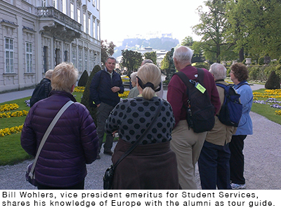 The group journeyed through the Netherlands, Belgium, Germany, Austria, and the Czech Republicunder the guidance of Bill Wohlers, experienced group trip leader and vice president emeritus for Student Services. Participants visited castles and flower gardens, hiked up scenic mountains, and even had a snowball fight on the highest peak in Germany.