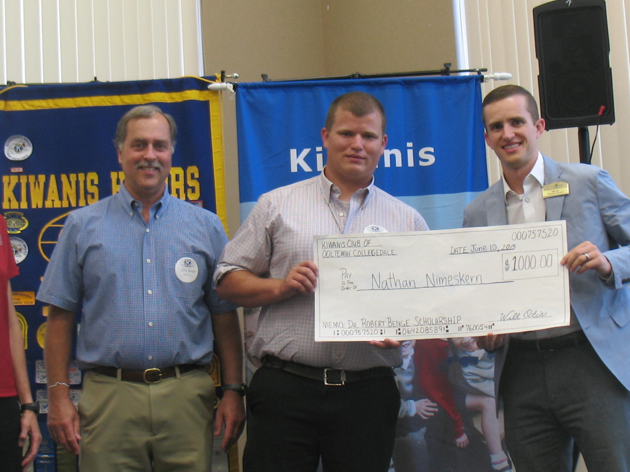 On June 10 the Collegedale-Ooltewah Kiwanis Club presented a $1,000 check to Nathan Nimeskern, who graduated in May 2015. This gift was inspired by 10 years of cooperation with Robert Benge, PhD, dean for the School of Physical Education, Health, and Wellness.
