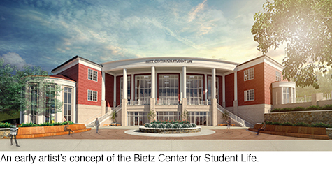 The legacy event and campaign’s public launch have been strongly connected since 2015 when Bietz announced his pending retirement and made known a strong desire to witness the student center’s groundbreaking before leaving office. Bietz was unaware plans were in the works to name the new facility after him. “I managed to hold my emotions in check fairly well until hearing the student center announcement and seeing a rendition of the building,” Bietz said.