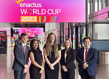 “What an enriching opportunity! Our students networked with people from around the world and worked closely with a superlative U.S. business school to share the presentation stage with No. 1 Enactus teams from all participating countries,” said Michelle Doucoumes, ’05, ’10, and ’22, associate professor in Southern’s School of Business and Enactus faculty sponsor. “The judges commended their work. I believe the students represented our university amazingly.”