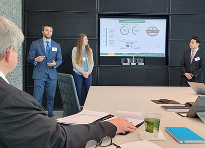 In the annual research challenge, students assume the role of financial analysts, evaluating a company and advising a panel of judges on whether to buy, sell, or hold stock in the company. The competition tests students’ analytical, valuation, report-writing, and presentation skills.