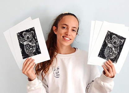 When the widespread fires began in Australia, she realized that she could use her public platform to help the cause. She created beautiful prints of koalas using the linocut technique, which involves cutting a design into linoleum, covering it in ink, and then stamping it onto paper, which she then sells.