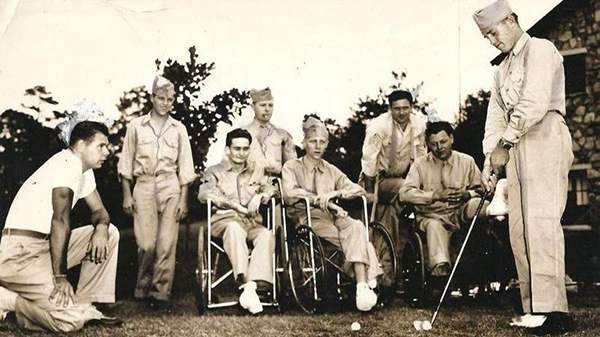 During his junior year as a medical student at CME, and because of WWII, PJ was drafted into military service along with most of his classmates. After a surgical internship at Georgia Baptist Hospital in Atlanta, he was assigned to Lawson General Hospital in Atlanta for a year where, as a surgeon, he operated on amputees who fought in the Battle of the Bulge. He took carloads of them to the golf courses as a way to help them through the rehabilitation process (Moore is pictured on the left in picture below).