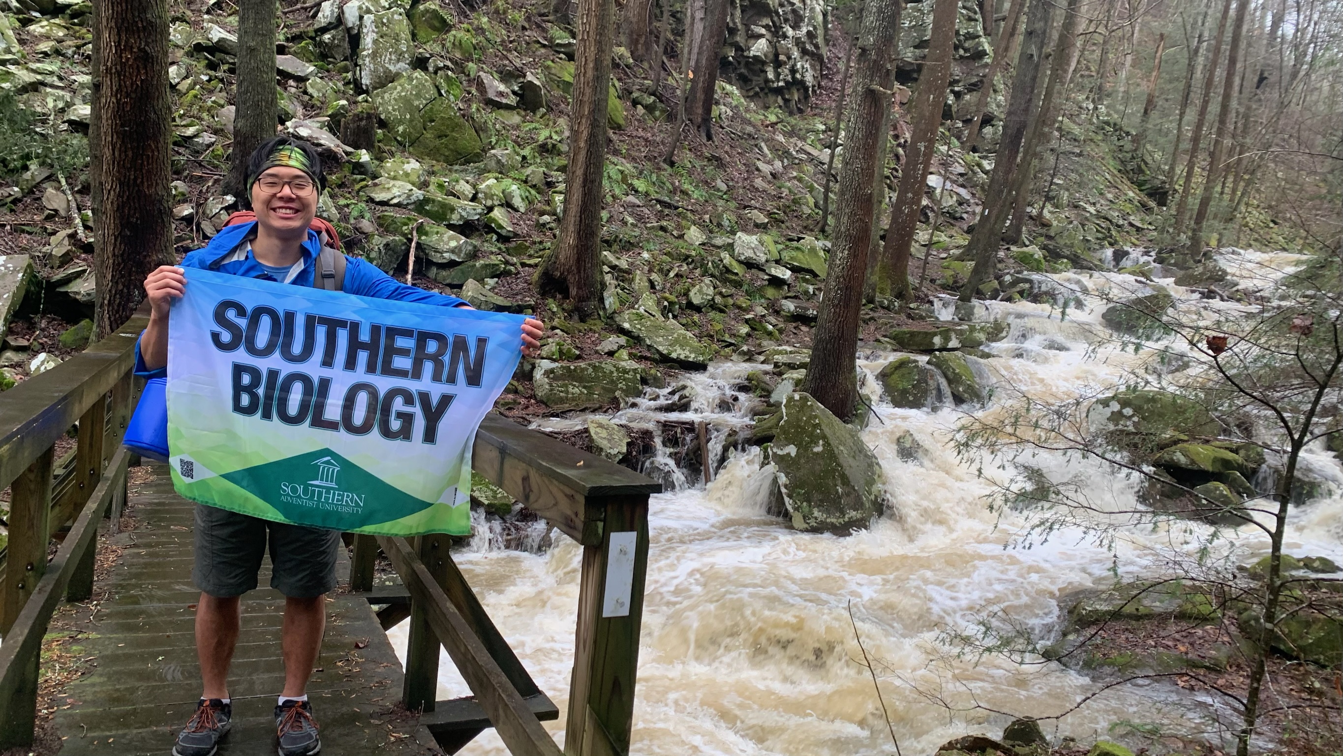 Joseph Chung backpacking the Fiery Gizzard trail at South Cumberland State Park on March 15, 2024. There was an intense thunderstorm but it was ok since he had gummy worms.