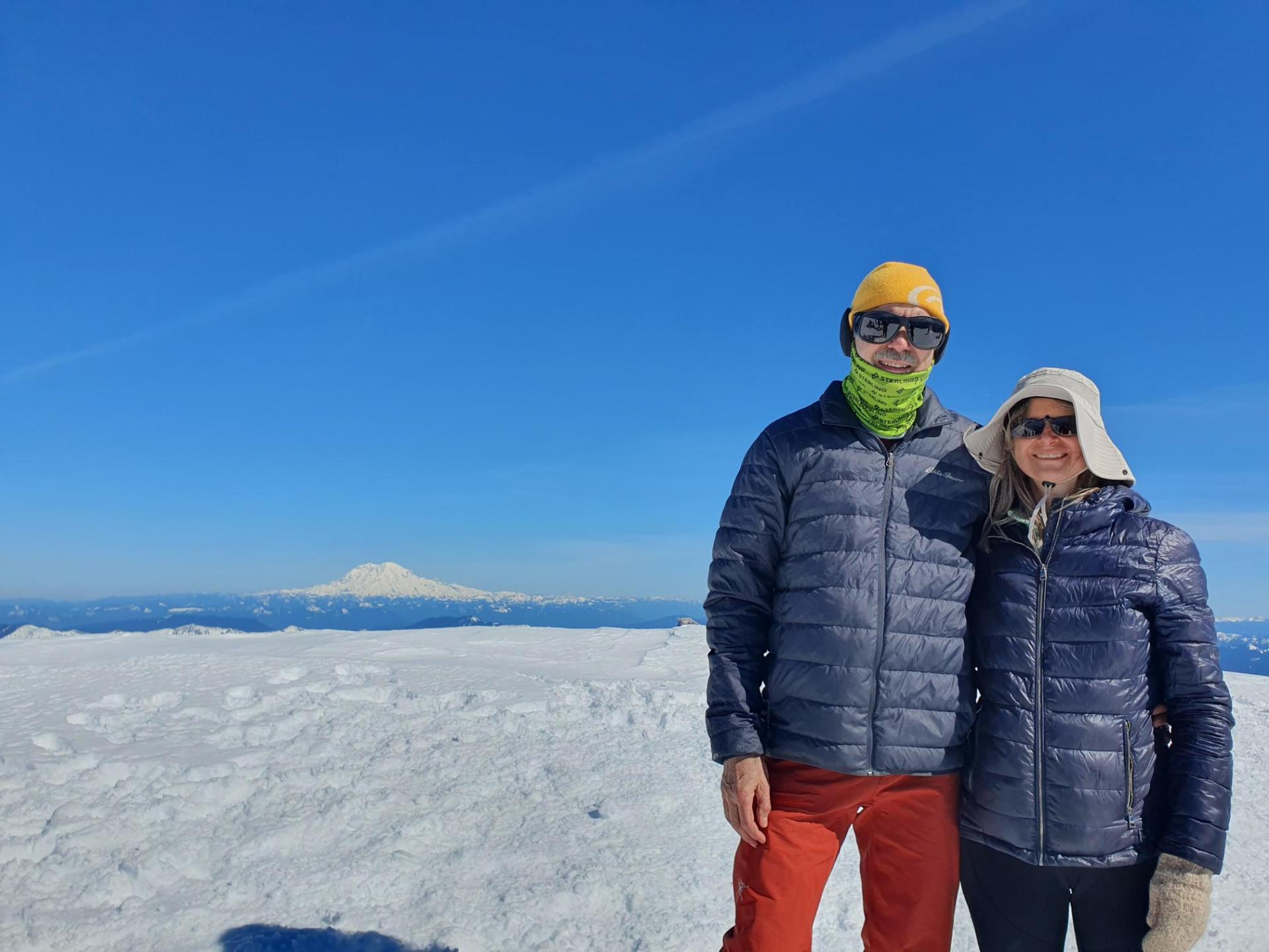 Keith and Beth Snyder on top of Mt. Saint Helens. March, 2024. Keith has been a fearless leader of the Biology department for decades.