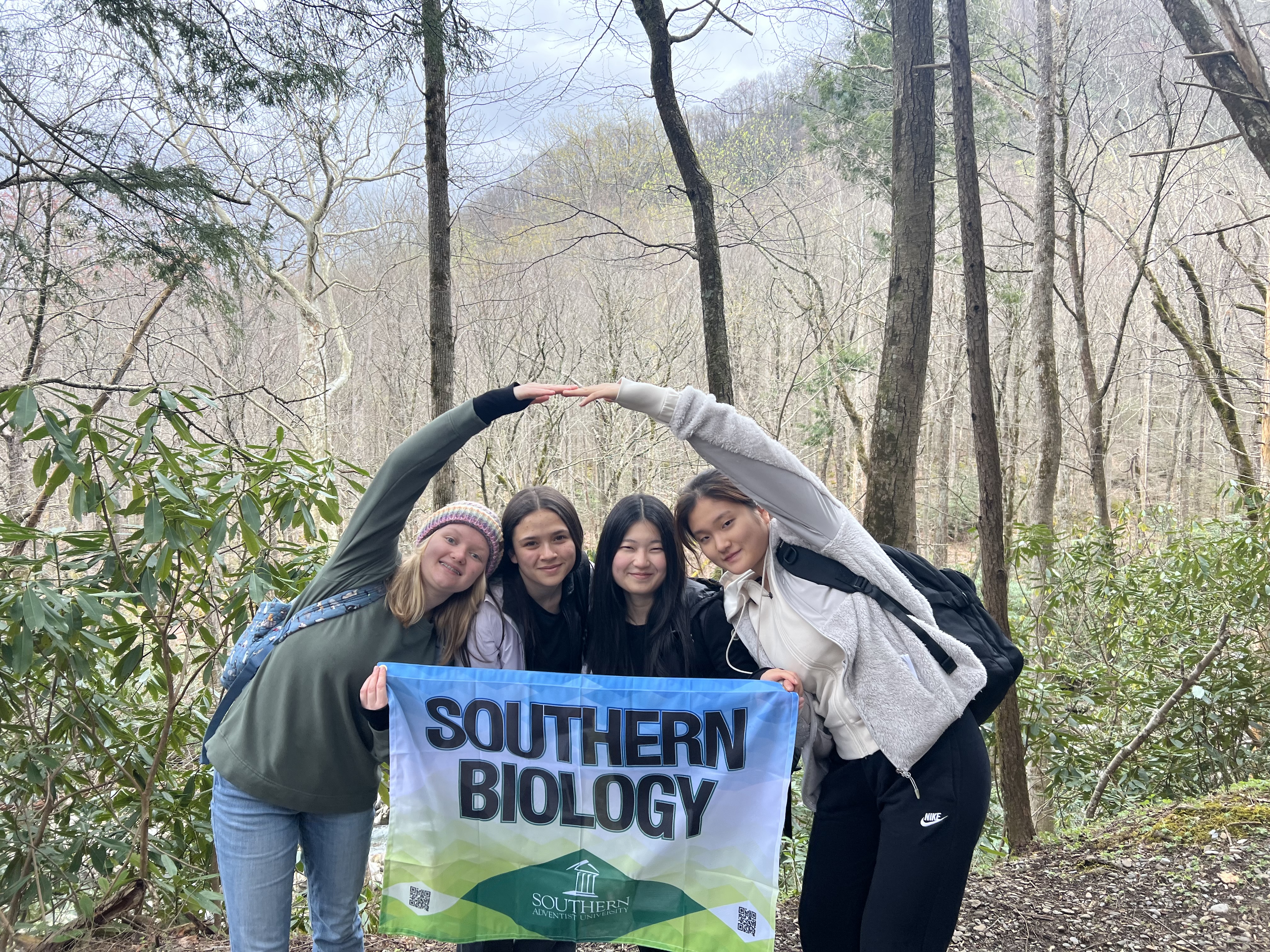 Stephanie Kim, Cambria Herbert, Yunseo Ahn, and Emma Davis at Great Smoky Mountains on their way up to a waterfall on April 4, 2024.
