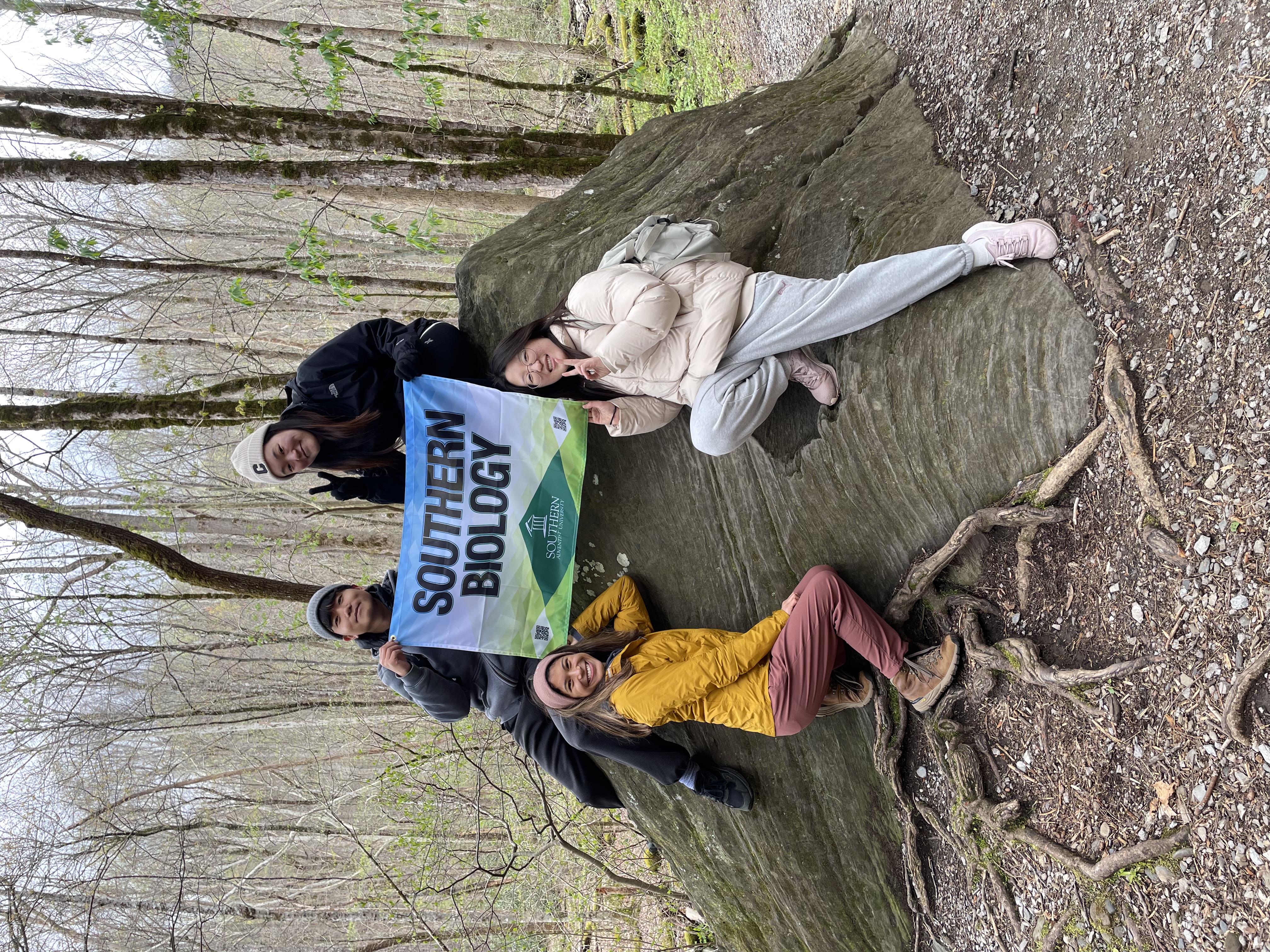 Cambria Donato and friends hiking on the Porter’s Creek Trail during the General Biology Campout in 2024. Great Smoky Mountains National Park.