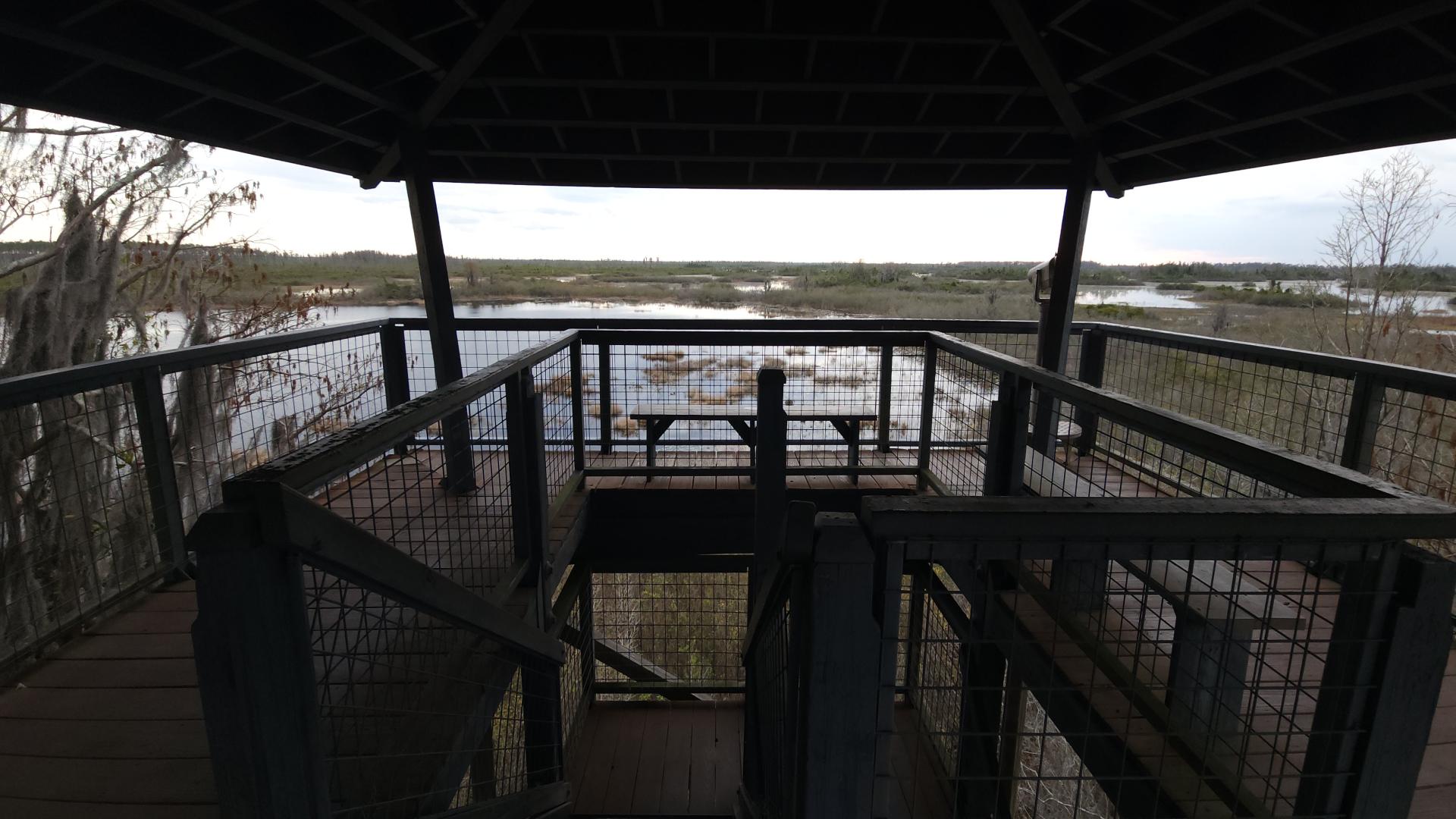 Located at the end of the Chesser Island Boardwalk, the observation tower in the Okefenokee National Wildlife Refuge provides a panoramic view of the vast swamp and surrounding nature.