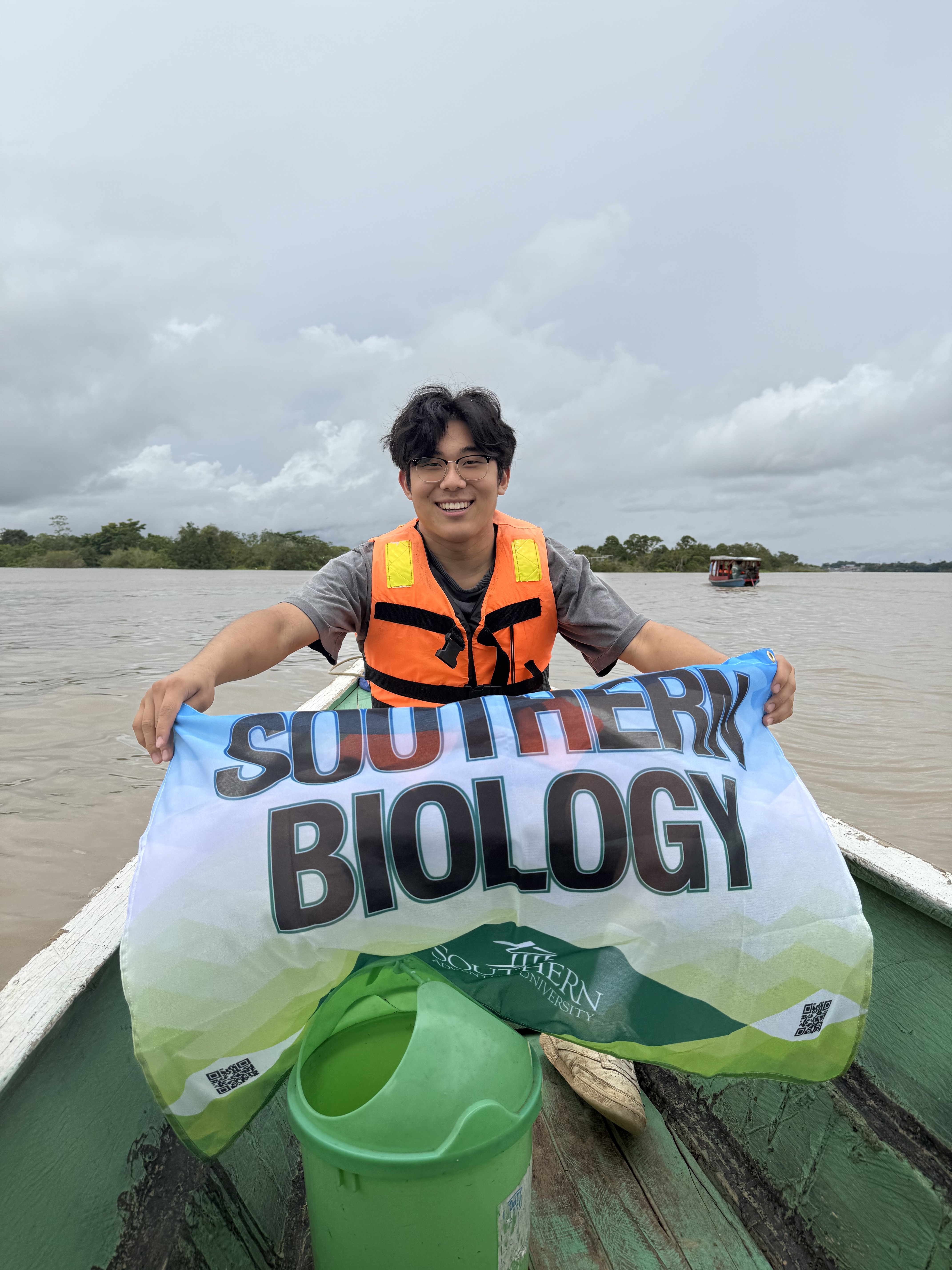 This is a photo of Benjamin Chun, taken on March 16, 2025, in Yarinacocha, Peru, on the Ucayali River near Pucallpa. The Ucayali River, one of the main tributaries of the Amazon, flows through eastern Peru and supports rich biodiversity, including pink river dolphins and manatees. It is vital to the city of Pucallpa, which sits along its banks and relies on the river for transportation, commerce, fishing, and daily life. As a key link between the Amazonian interior and the rest of Peru, the Ucayali serves as both an economic lifeline and a cultural cornerstone for the region. Benjamin was in Peru as part of the 2025 SAU Medical Mission Trip, and this photo was taken on the Sunday before a week of clinics began. Throughout the week, the team served the people of Pucallpa by providing family medicine, pediatrics, cardiology, ultrasound, dental, and vision care. This experience deepened Benjamin’s commitment to compassionate service and reinforced his calling to use medicine as a tool for meaningful impact in underserved communities.