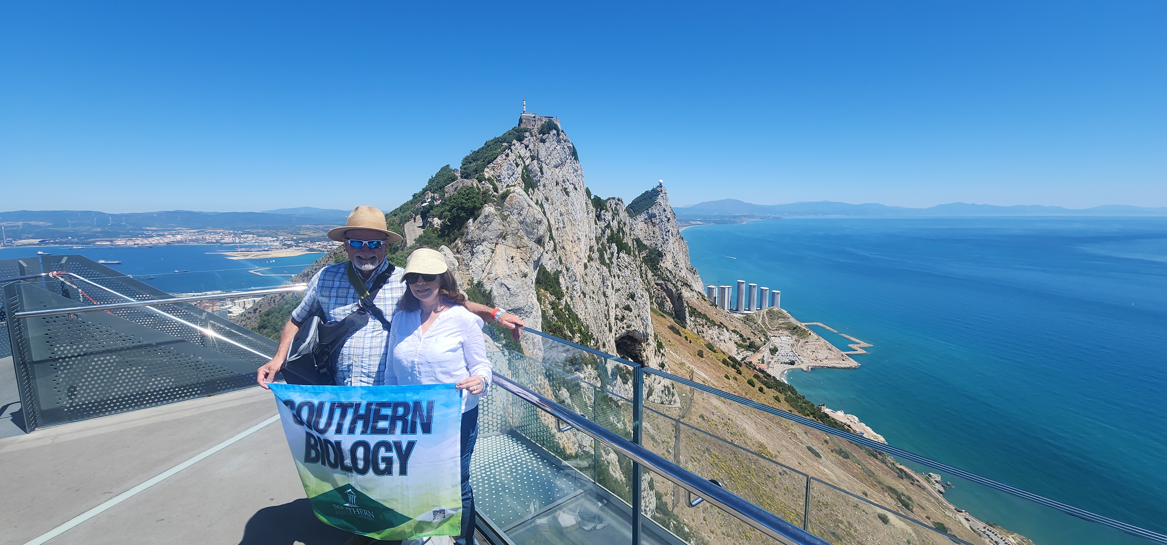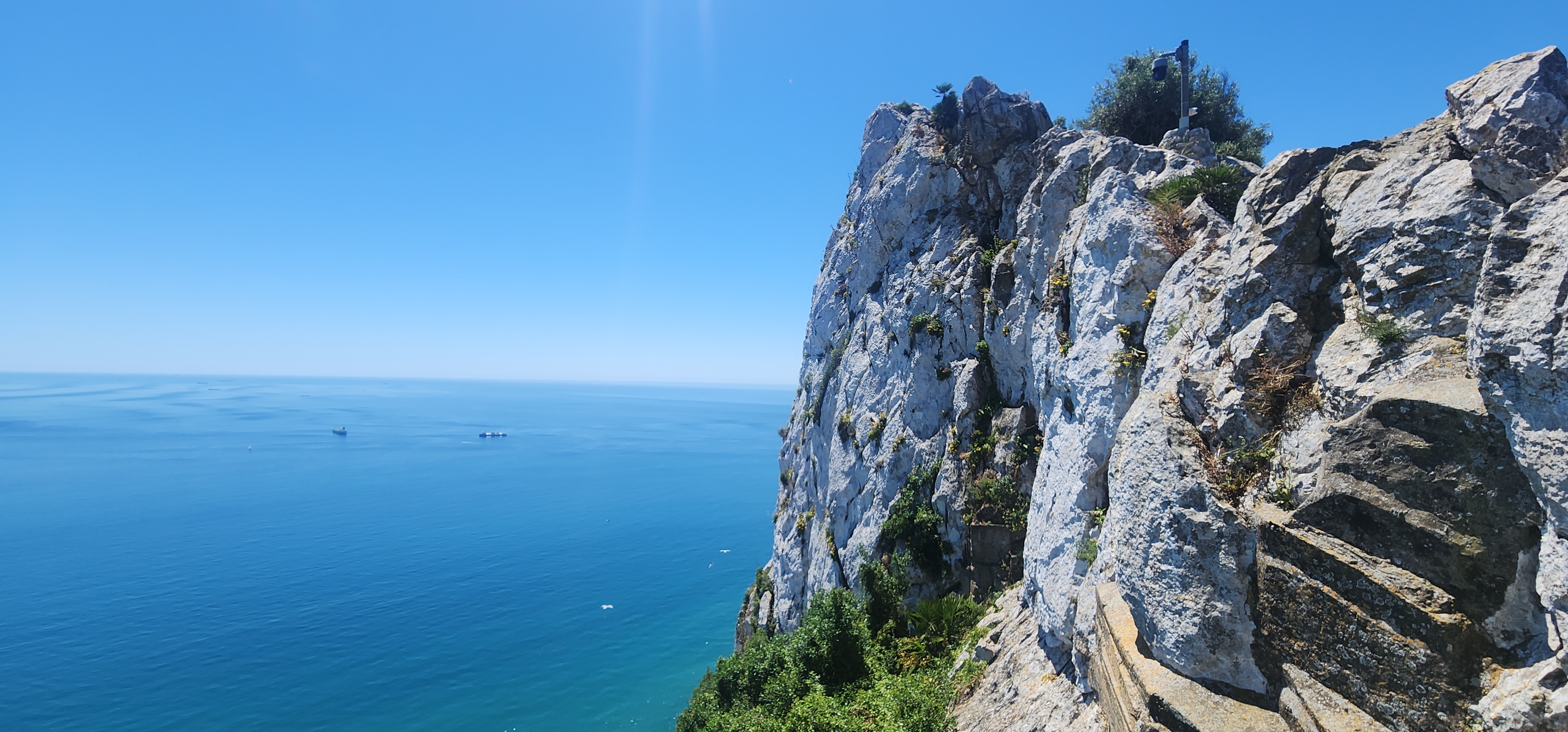 The Rock of Gibraltar is a dramatic and iconic limestone promontory located at the southern tip of the Iberian Peninsula, in the British Overseas Territory of Gibraltar. It rises sharply to a height of 426 meters (1,398 feet) and overlooks the Strait of Gibraltar, the narrow waterway that separates Europe and Africa and connects the Atlantic Ocean to the Mediterranean Sea.