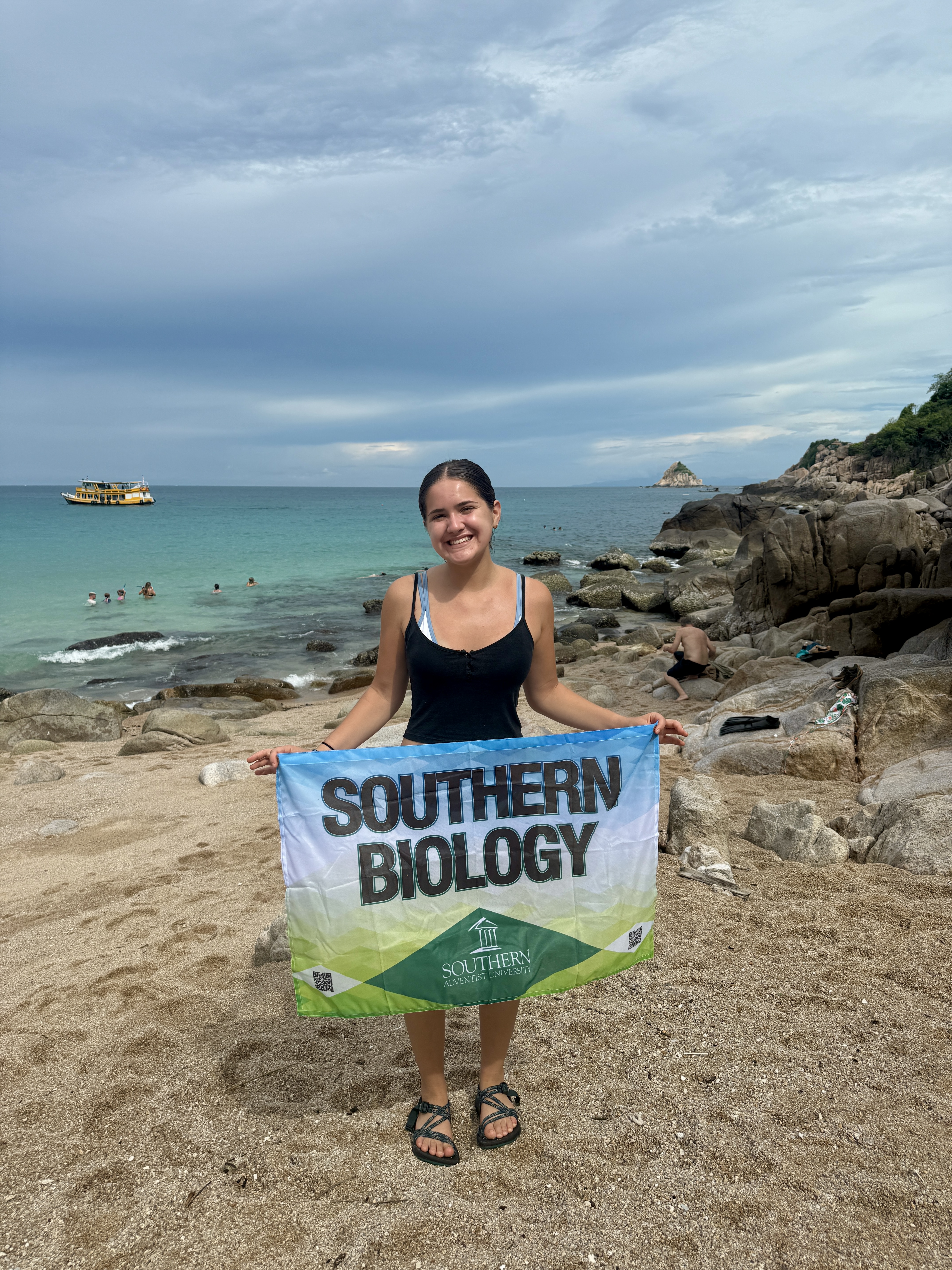 Alison Scruggs' favorite island in Thailand is currently Ko Tao, at only 7 km long, you can travel from tip to tip in 30 minutes via moped. Aow Leuk Beach is one of the most famous beaches on this island because of the frequent sightings of black tip sharks.