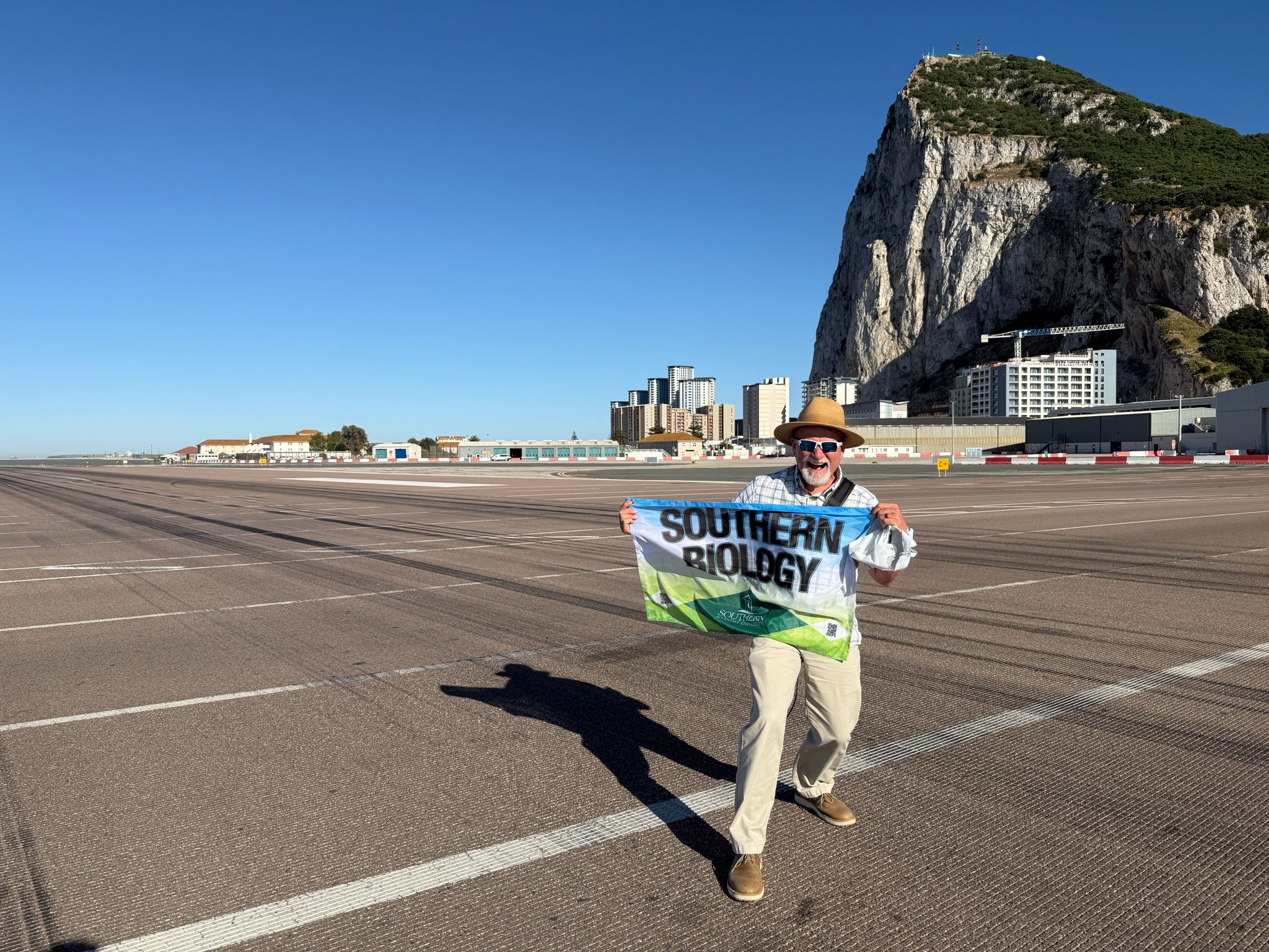 Gibraltar International Airport is unique because the main road, Winston Churchill Avenue, crosses the active runway. This allows pedestrians and cyclists to walk or ride across the runway when it's not in use.