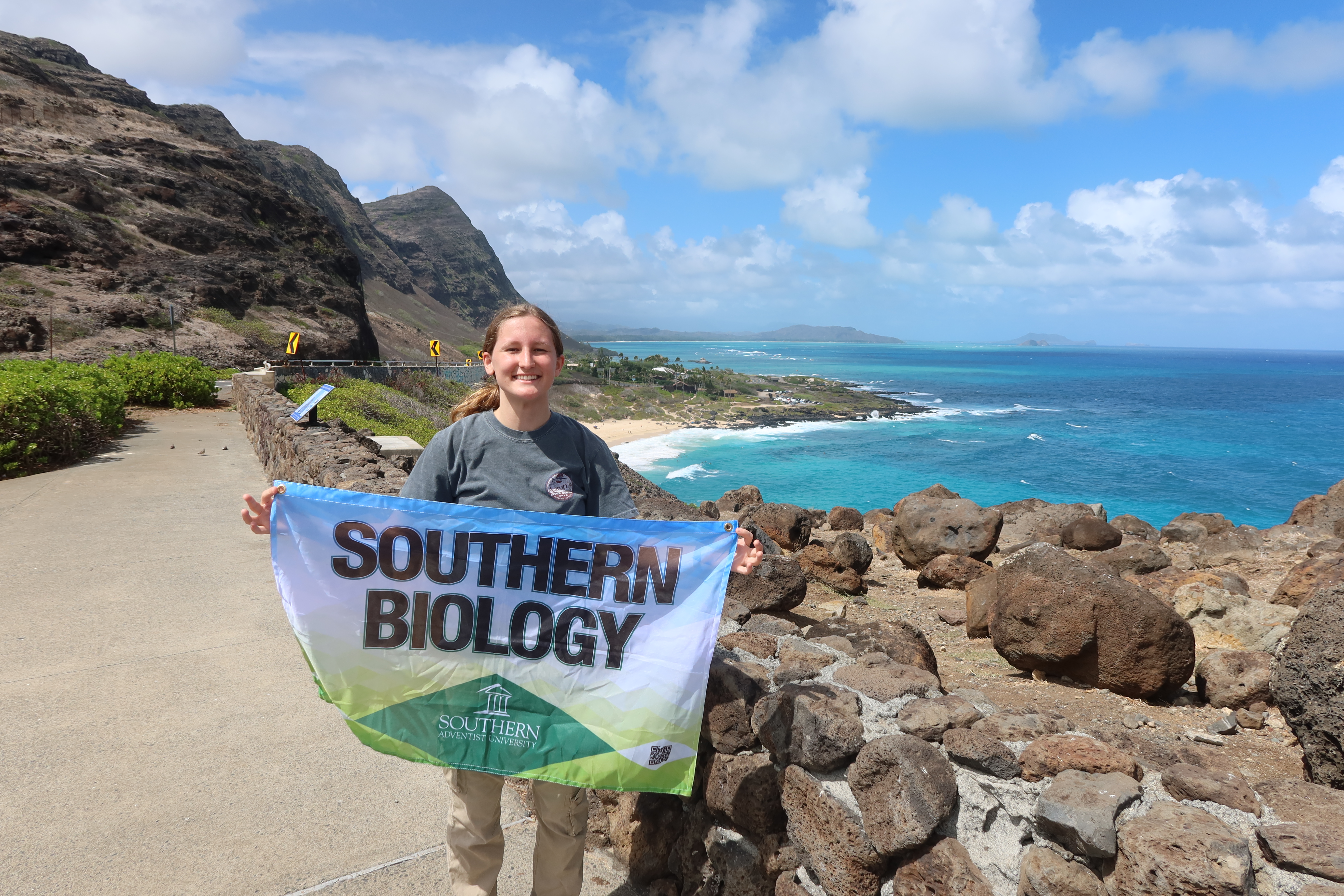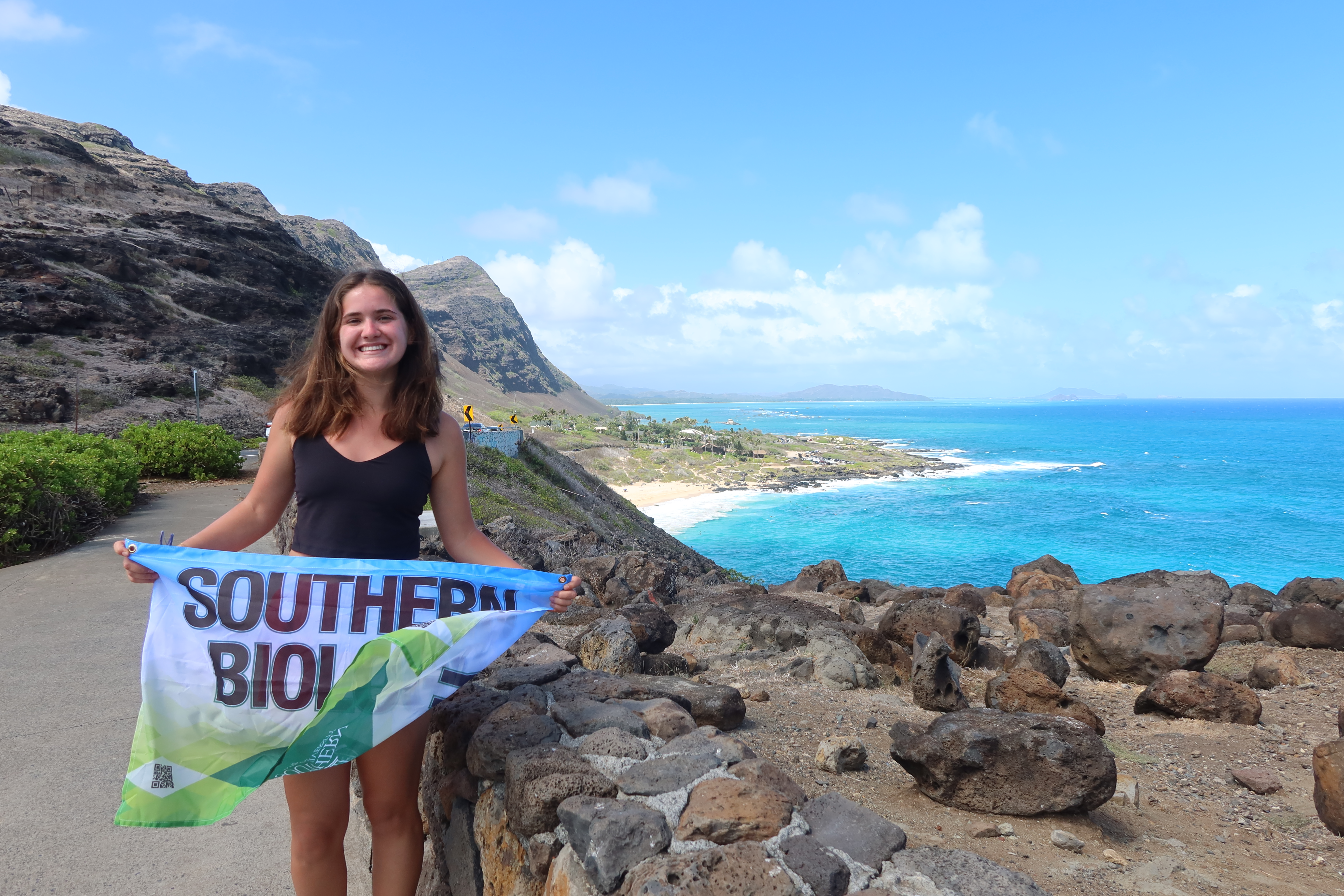 Elea Gould and Alison Scruggs at Makap'u lookout over fall break 2025. Makapuʻu Lookout offers sweeping views of Oʻahu’s rugged volcanic cliffs, the deep Pacific, and offshore islets like Mānana (Rabbit Island). Also it's light house was featured in movie 50 first dates.