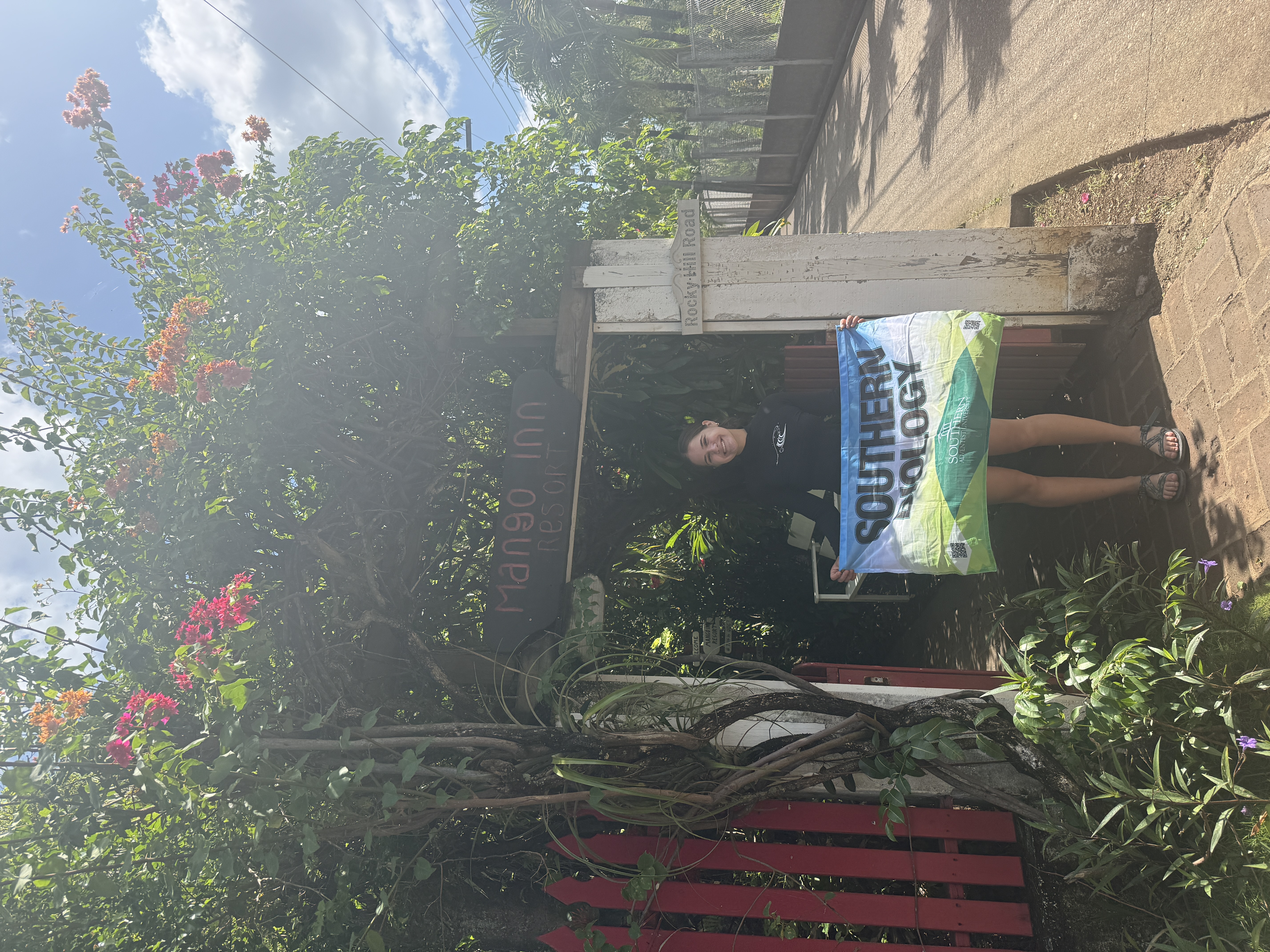 Alison Scruggs outside mango inn, the best place to find scuba diving adventurers! Spring break 2026