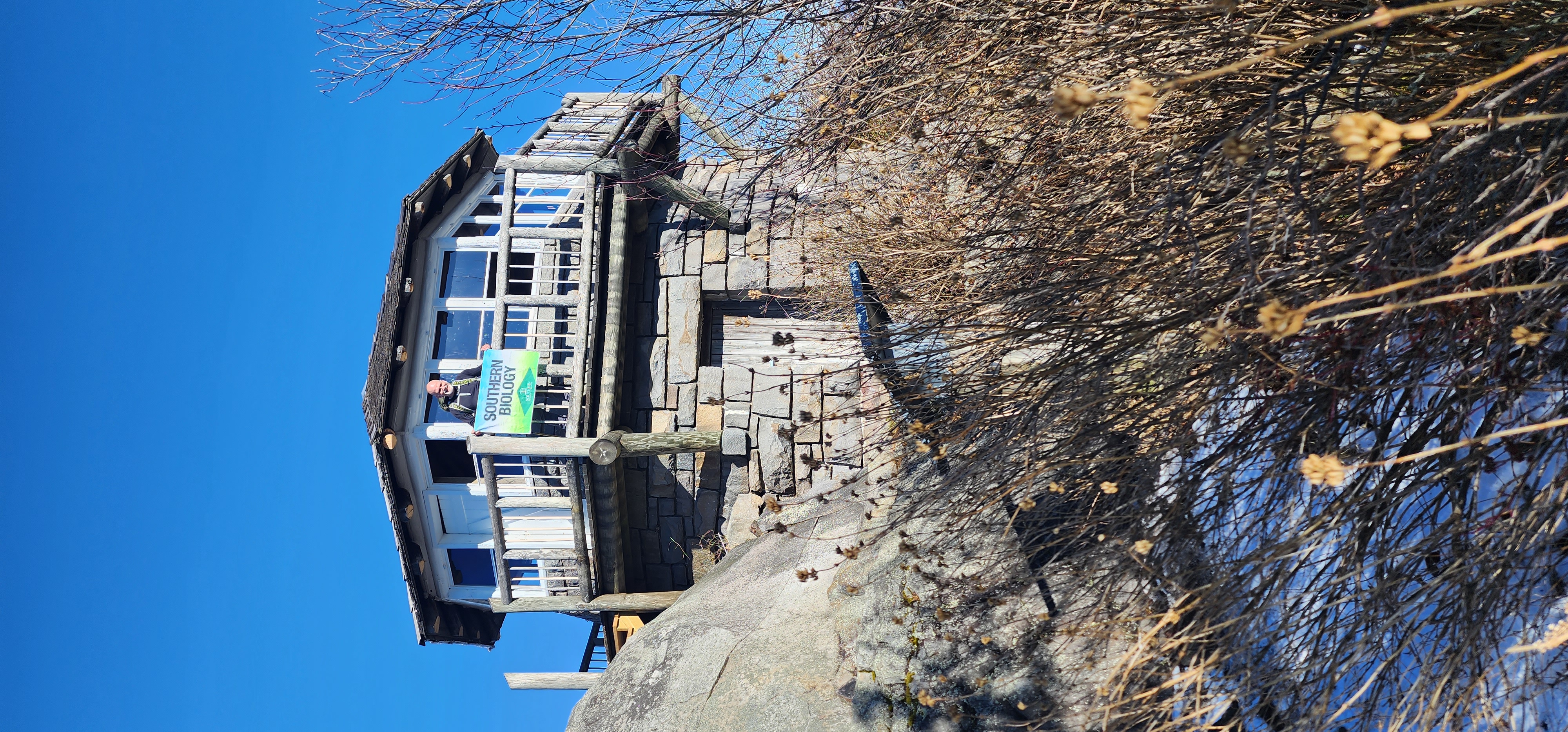 Breanna and Ben Thornton at the fire tower on top of Mt. Cammerer. January 2024.