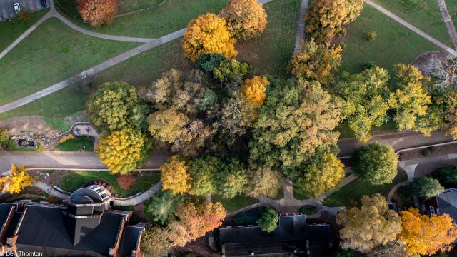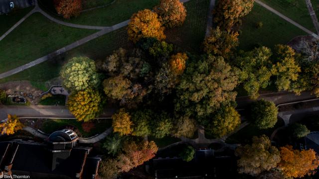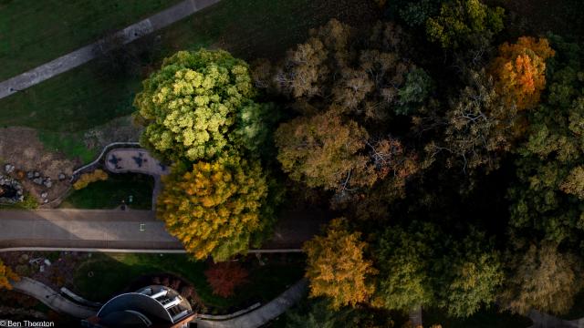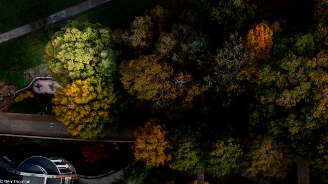 In spring, the young leaves are delicate, silvery pink, and covered with a soft blanket-like down. The petioles are short, and the clustered leaves close to the ends of the shoots are pale green and downy, resulting in the entire tree having a misty, frosty look. This condition continues for several days, passing through the opalescent changes of soft pink, silvery white, and finally, yellow green.[5][7] The leaves grow to be 127 to 216 millimetres (5–8+1⁄2 inches) long and 7 to 11.5 centimetres (2+3⁄44+1⁄2 in) wide and have a deep glossy green upper surface. They usually turn red or brown in autumn, but depending on climate, site, and individual tree genetics, some trees are nearly always red, or even purple in autumn. Some dead leaves may remain on the tree throughout winter until very early spring. The lobes can be shallow, extending less than halfway to the midrib, or deep and somewhat branching.