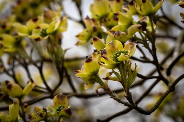 Cornus florida, the flowering dogwood, is a species of flowering tree in the family Cornaceae native to eastern North America and northern Mexico. An endemic population once spanned from southernmost coastal Maine south to northern Florida and west to the Mississippi River.[4] The tree is commonly planted as an ornamental in residential and public areas because of its showy bracts and interesting bark structure.