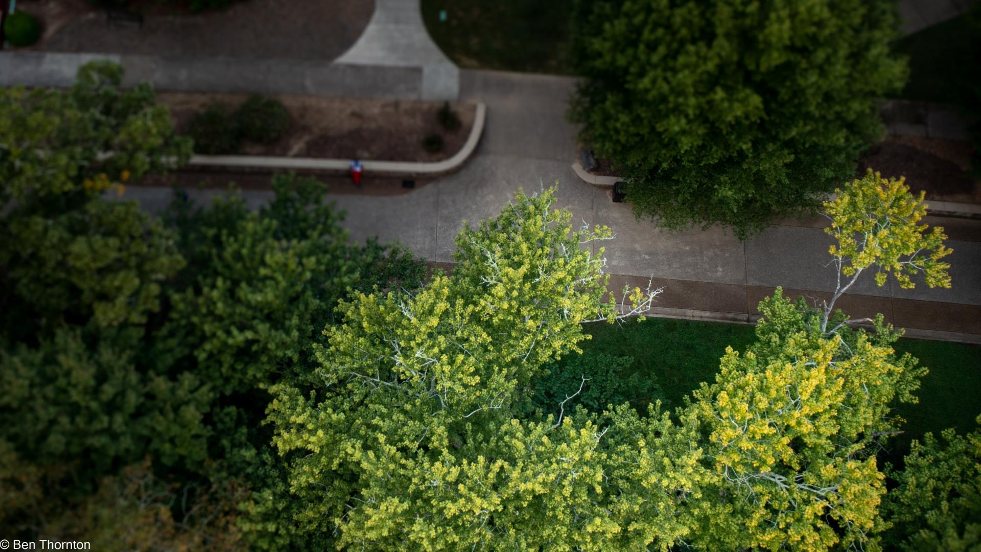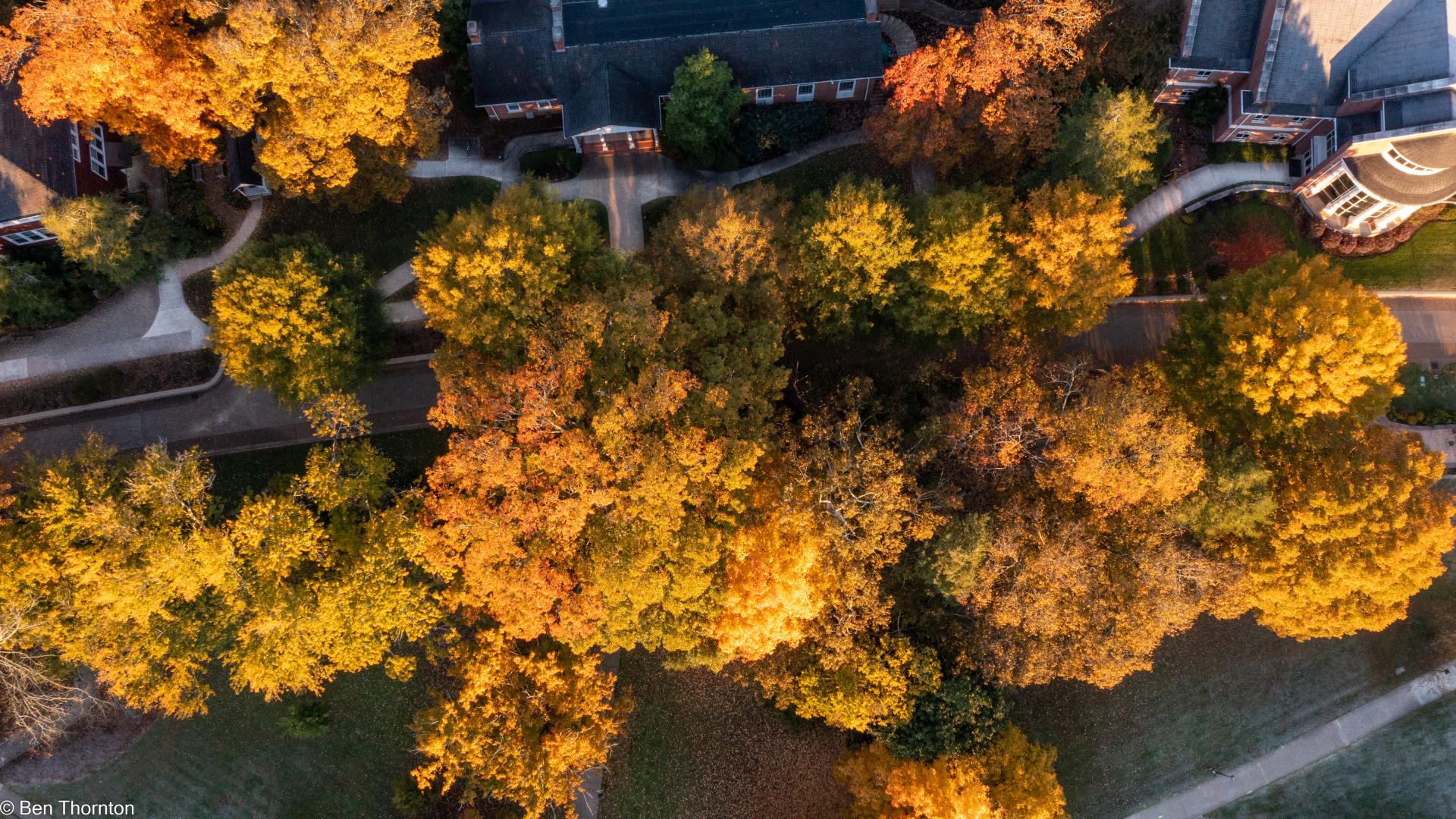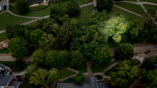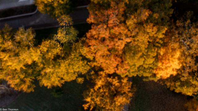 The silver maple tree is a relatively fast-growing deciduous tree, commonly reaching a height of 15–25 m (49–82 ft), exceptionally 35 m (115 ft). Its spread will generally be 11–15 m (36–49 ft) wide. A 10-year-old sapling will stand about 8 m (26 ft) tall. It is often found along waterways and in wetlands, leading to the colloquial name "water maple". It is a highly adaptable tree, although it has higher sunlight requirements than other maple trees. The leaves are simple and palmately veined, 8–16 cm (3+1⁄46+1⁄4 in) long and 6–12 cm (2+1⁄44+3⁄4 in) broad, with deep angular notches between the five lobes. The 5–12 cm (2–4+3⁄4 in) long, slender stalks of the leaves mean that even a light breeze can produce a striking effect as the downy silver undersides of the leaves are exposed. The autumn color is less pronounced than in many maples, generally ending up a pale yellow, although some specimens can produce a more brilliant yellow and even orange and red colorations. The tree has a tendency to color and drop its leaves slightly earlier in autumn than other maples.
