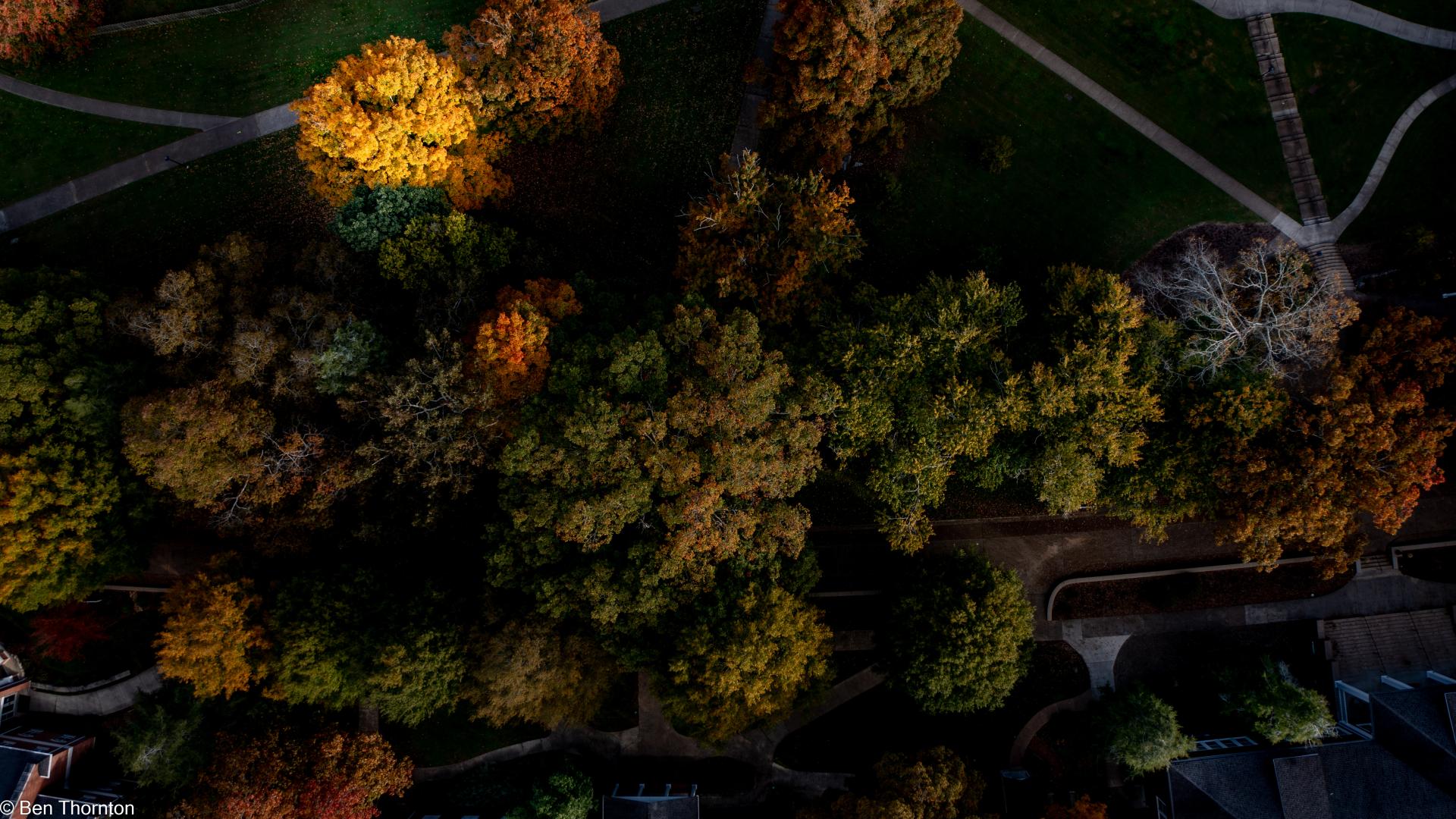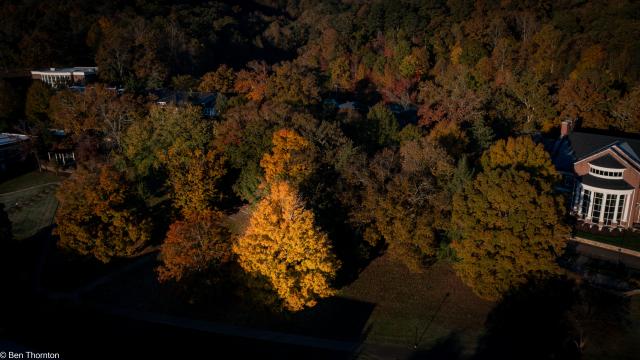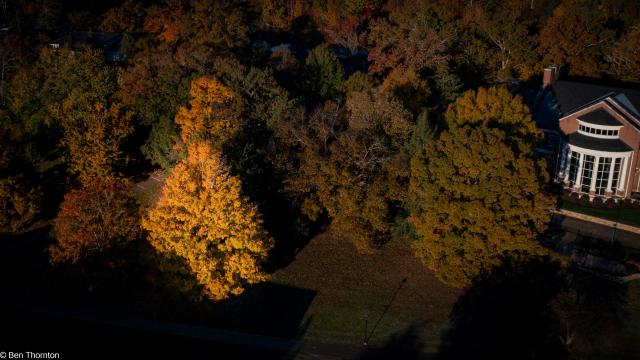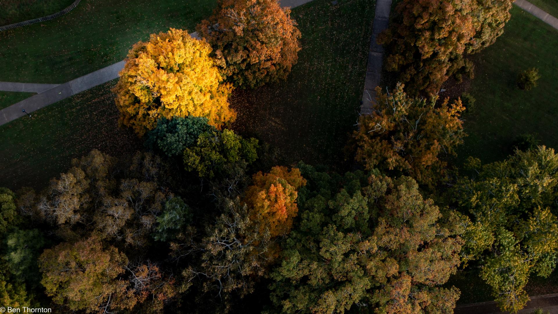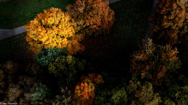 The LEAVES are deciduous, up to 20 cm (7.9 in) long and wide,[8] palmate, with five lobes and borne in opposite pairs. The basal lobes are relatively small, while the upper lobes are larger and deeply notched. In contrast with the angular notching of the SILVER MAPLE, however, the notches tend to be rounded at their interior. The fall color is often spectacular, ranging from bright yellow on some trees through orange to fluorescent red-orange on others. Sugar maples also have a tendency to color unevenly in fall. In some trees, all colors above can be seen at the same time. They also share a tendency with RED MAPLES for certain parts of a mature tree to change color weeks ahead of or behind the remainder of the tree. The leaf buds are pointy and brown-colored. The recent year's growth twigs are green, and turn dark brown.[CITATION NEEDED]