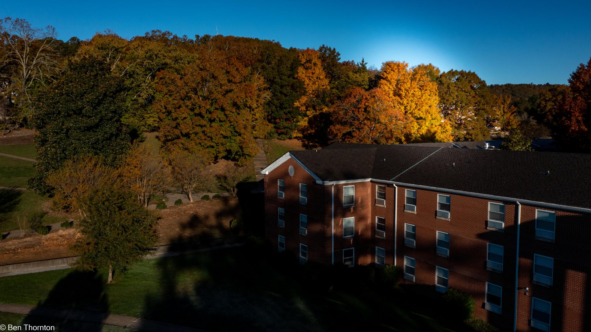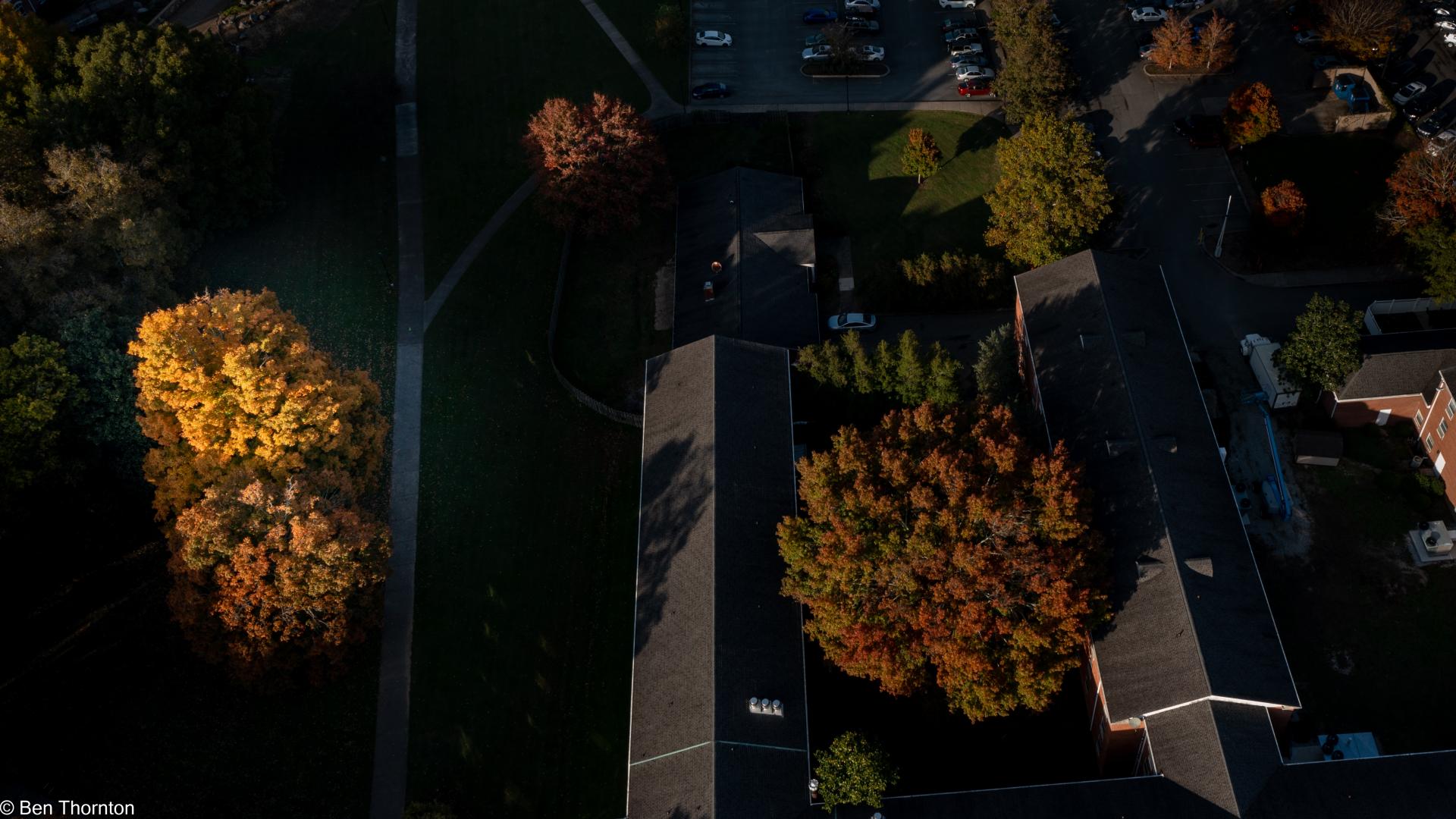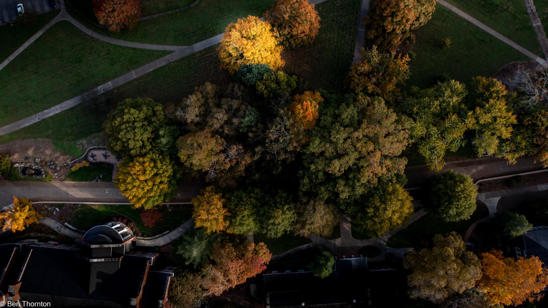 The LEAVES are deciduous, up to 20 cm (7.9 in) long and wide,[8] palmate, with five lobes and borne in opposite pairs. The basal lobes are relatively small, while the upper lobes are larger and deeply notched. In contrast with the angular notching of the SILVER MAPLE, however, the notches tend to be rounded at their interior. The fall color is often spectacular, ranging from bright yellow on some trees through orange to fluorescent red-orange on others. Sugar maples also have a tendency to color unevenly in fall. In some trees, all colors above can be seen at the same time. They also share a tendency with RED MAPLES for certain parts of a mature tree to change color weeks ahead of or behind the remainder of the tree. The leaf buds are pointy and brown-colored. The recent year's growth twigs are green, and turn dark brown.[CITATION NEEDED]