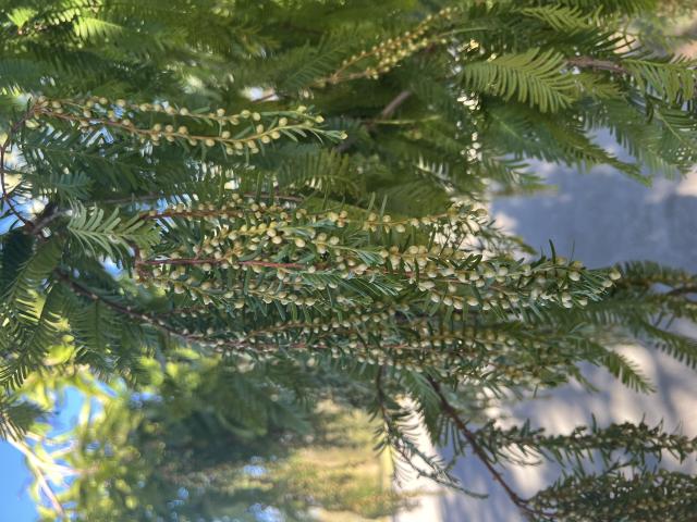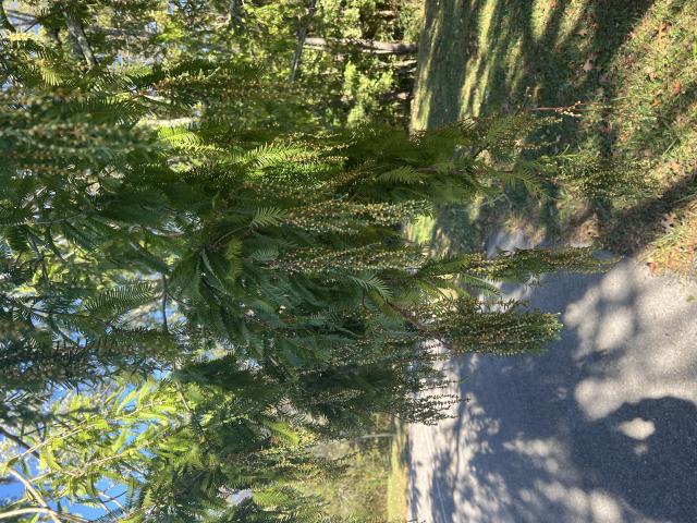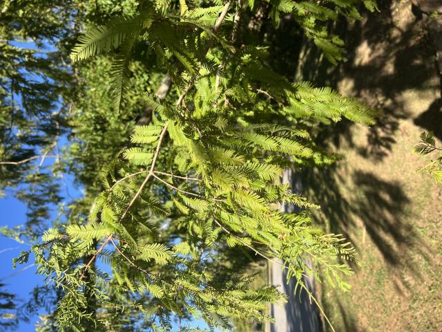 Taxodium distichum(bald cypress)is adeciduousconiferin the familyCupressaceae. It is native to the southeastern United States. Hardy and tough, this tree adapts to a wide range of soil types, whether wet, dry, or swampy. It is noted for the russet-red fall color of its lacy needles.
