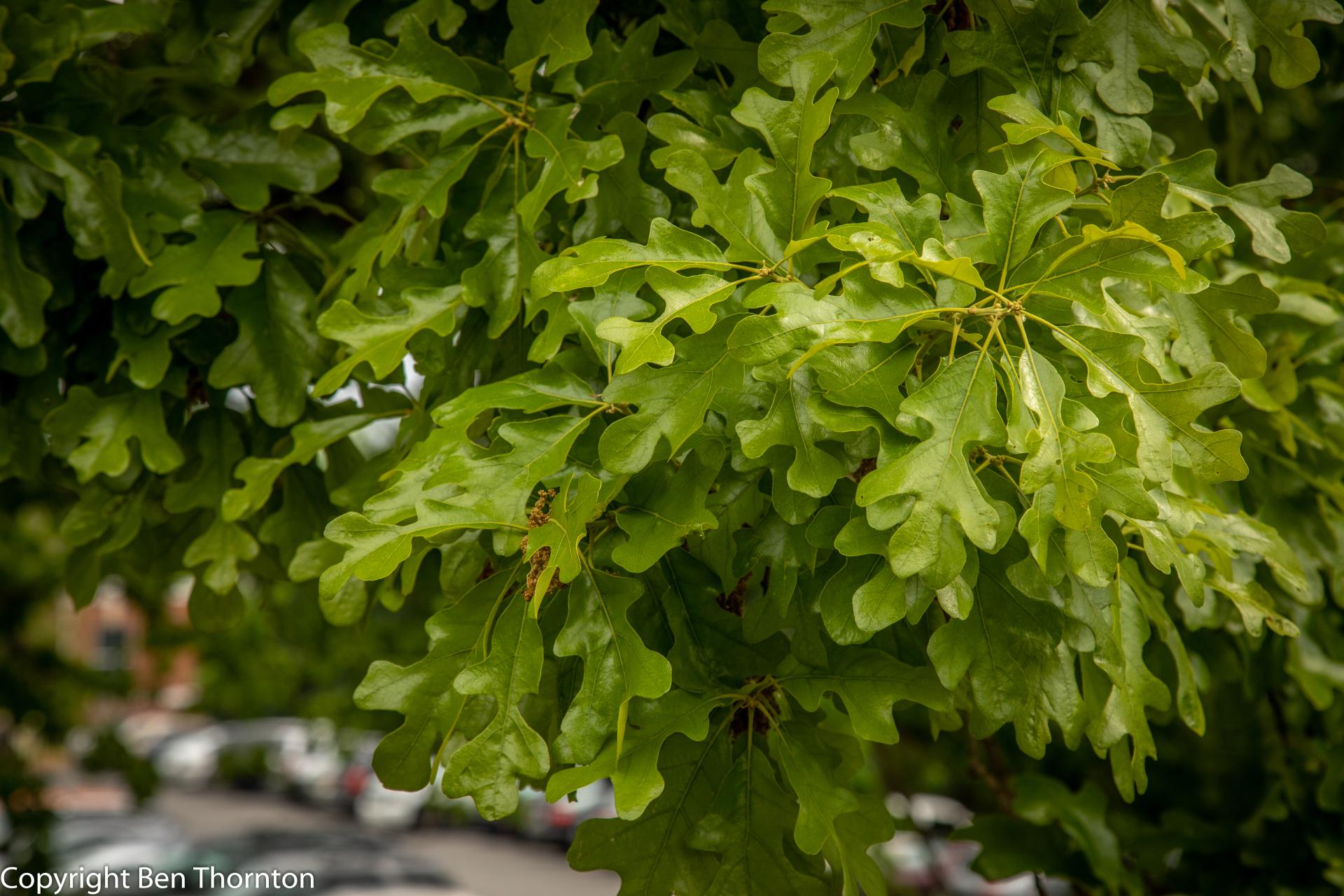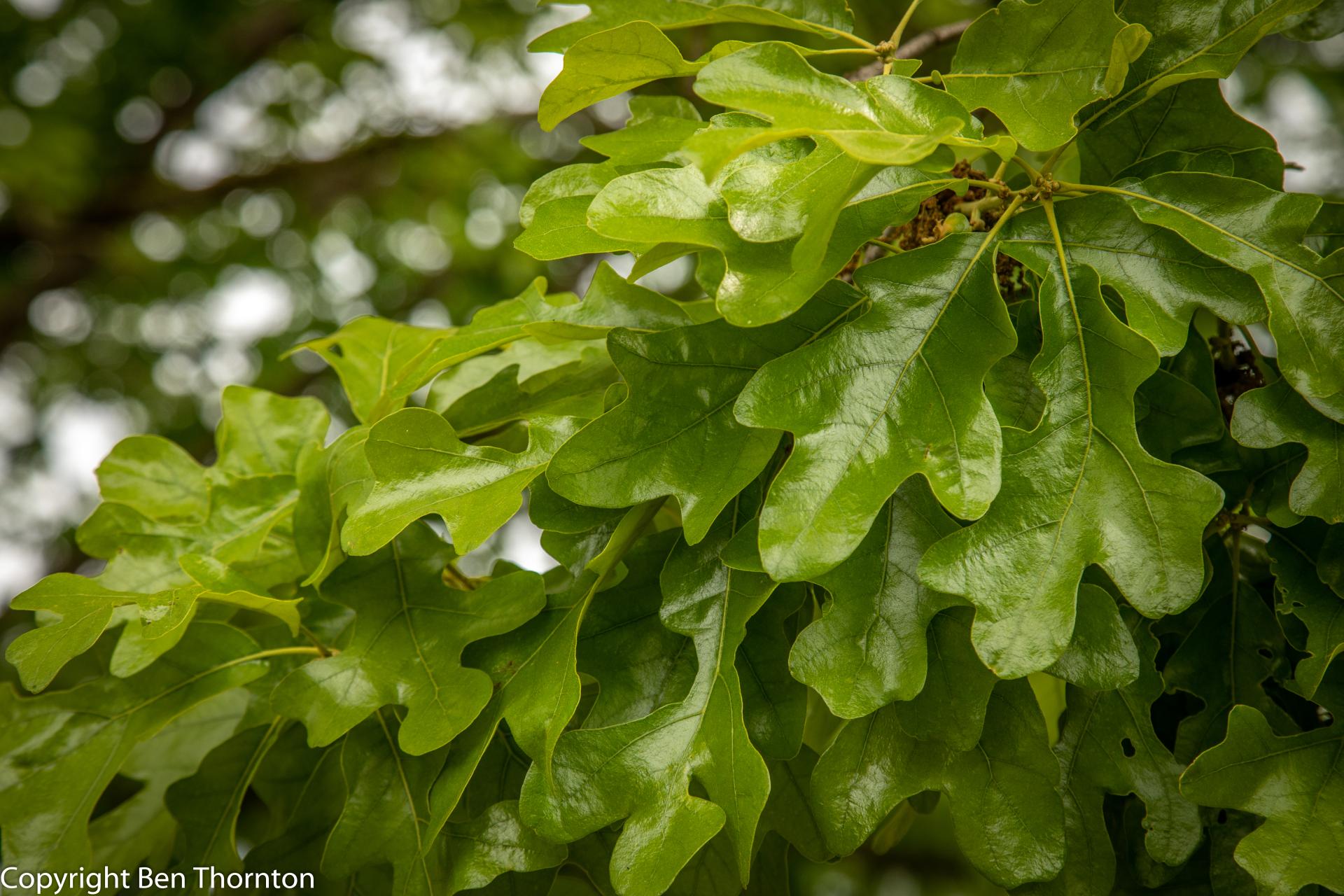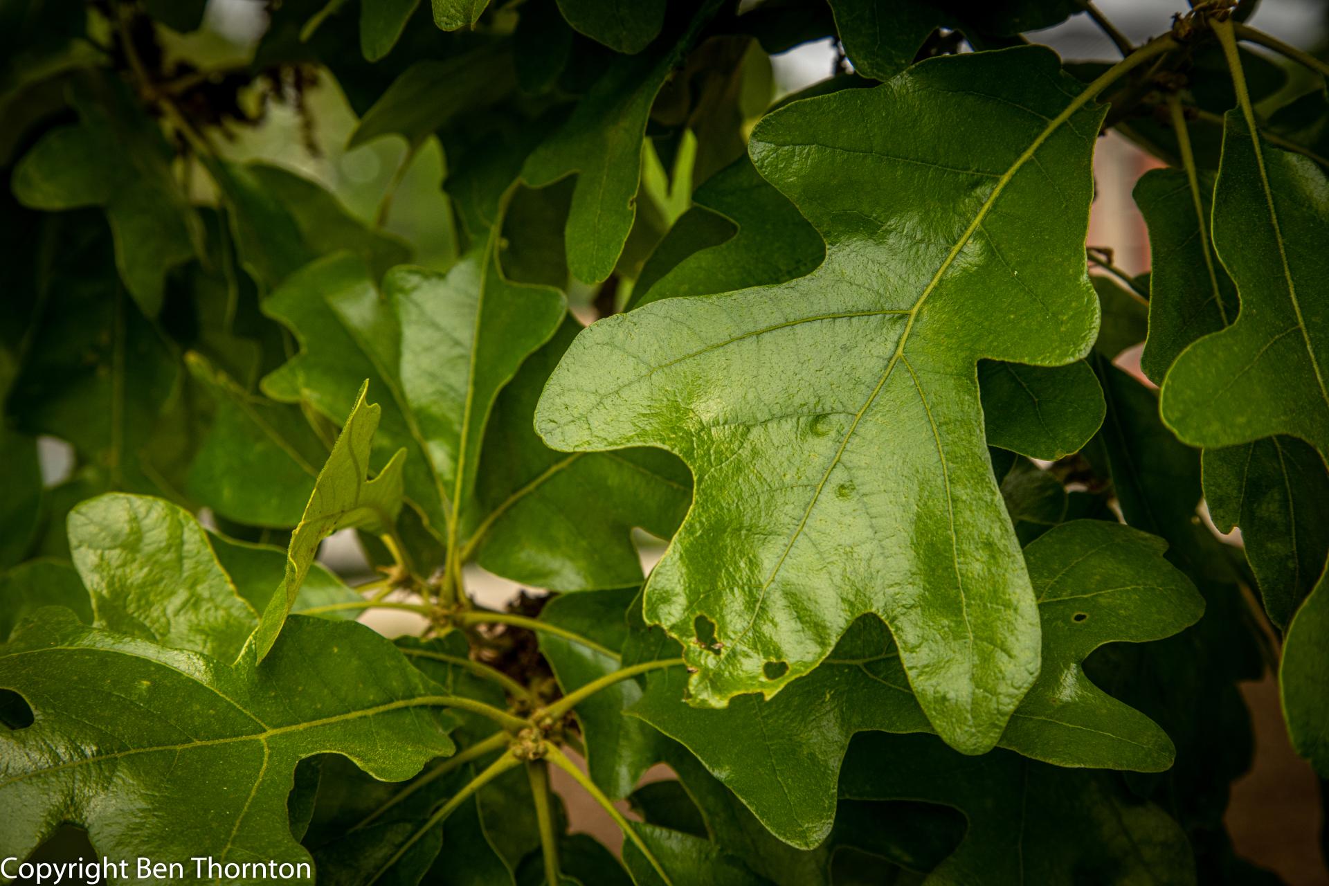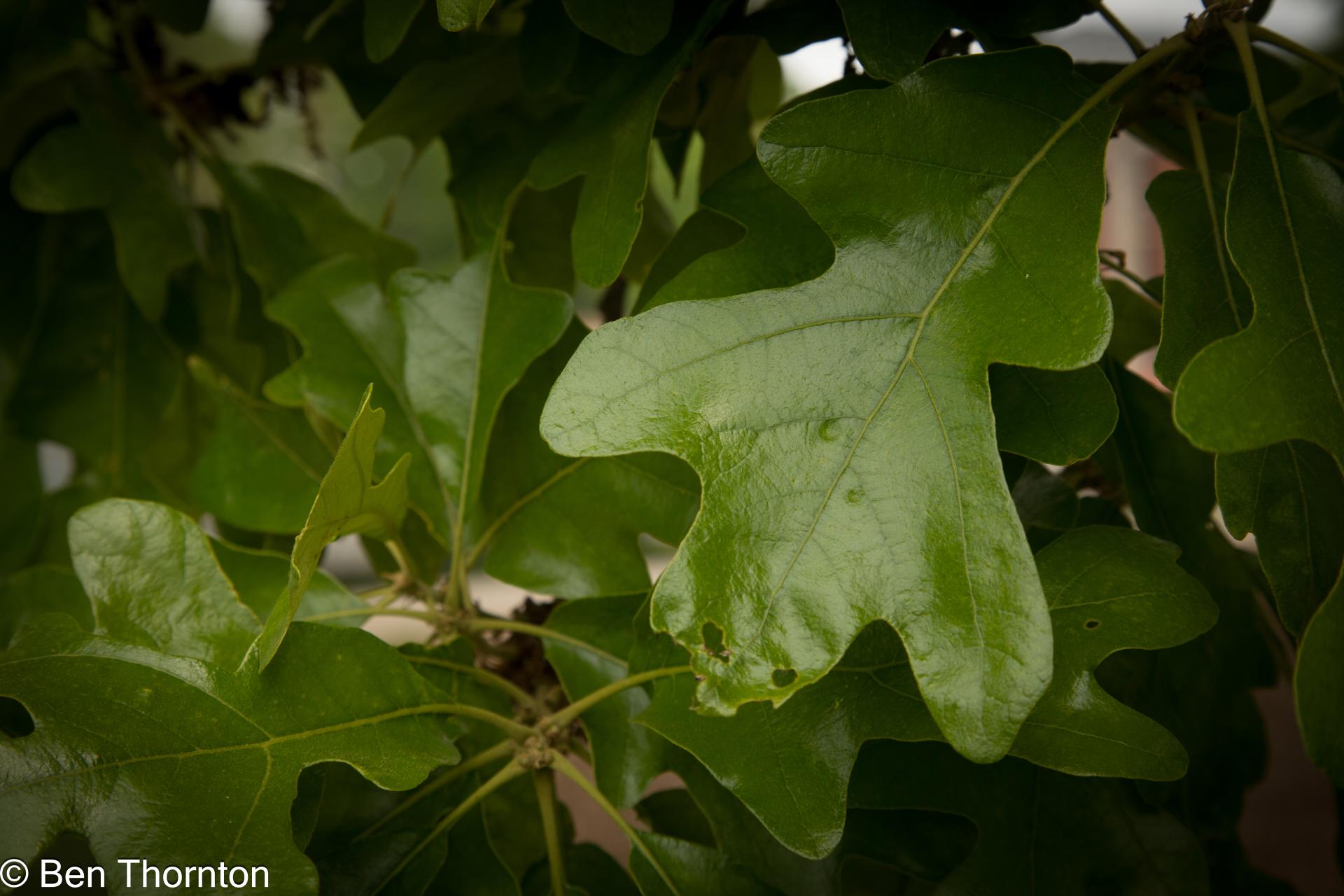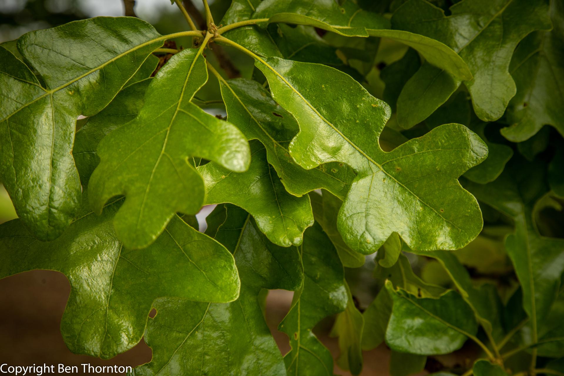 Post oak is a relatively small tree, typically 10–15 metres (33–49 feet) tall and trunk 30–60 centimetres (12–24 inches) in diameter, though occasional specimens reach 30 m (98 ft) tall and 140 cm (55 in) in diameter. The leaves have a very distinctive shape, with three perpendicular terminal lobes, shaped much like a Maltese cross. They are leathery, and tomentose (densely short-hairy) beneath. The branching pattern of this tree often gives it a rugged appearance. The acorns are 1.5–2 cm (5⁄83⁄4 in) long, and are mature in their first summer.[4]