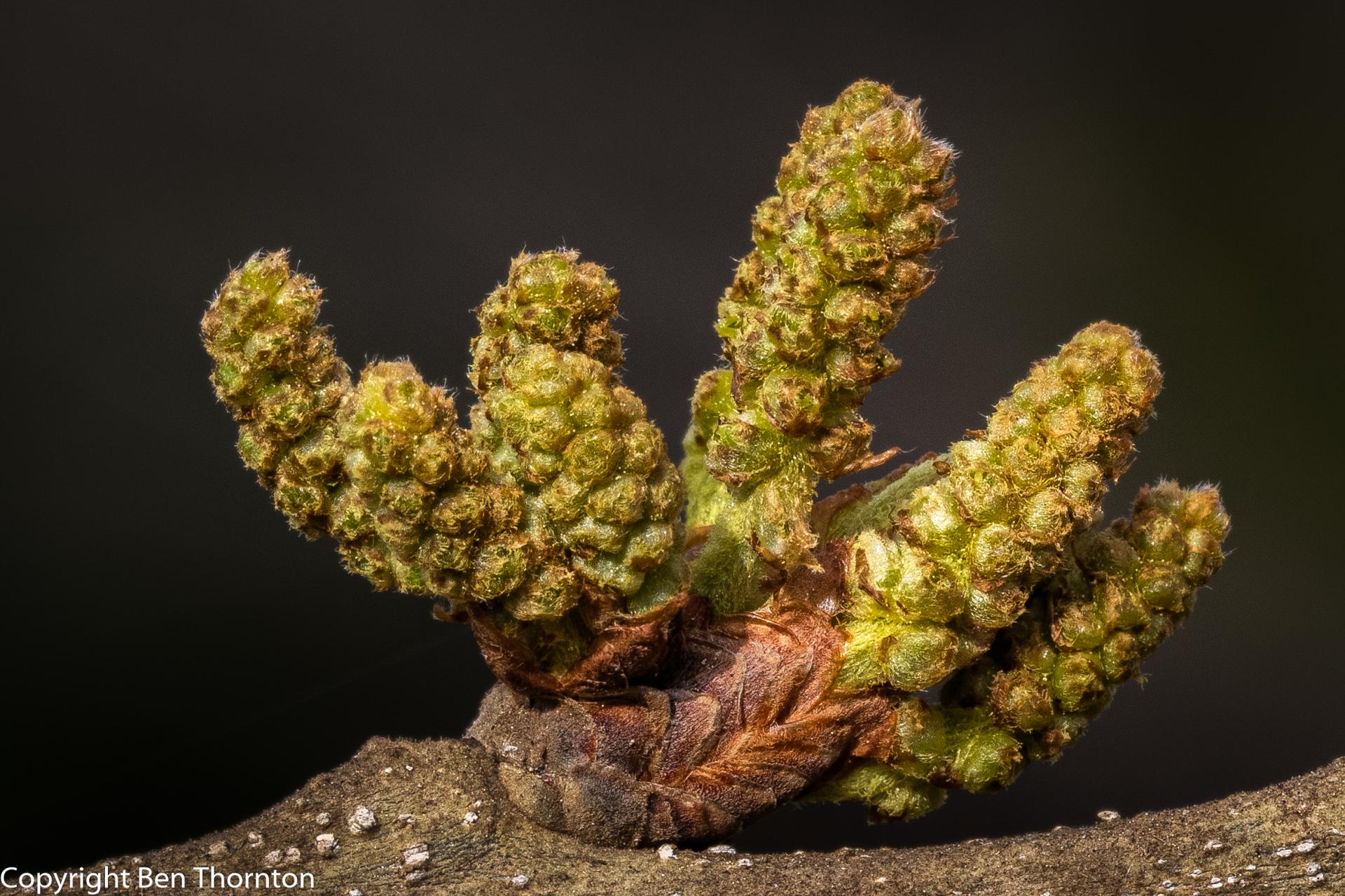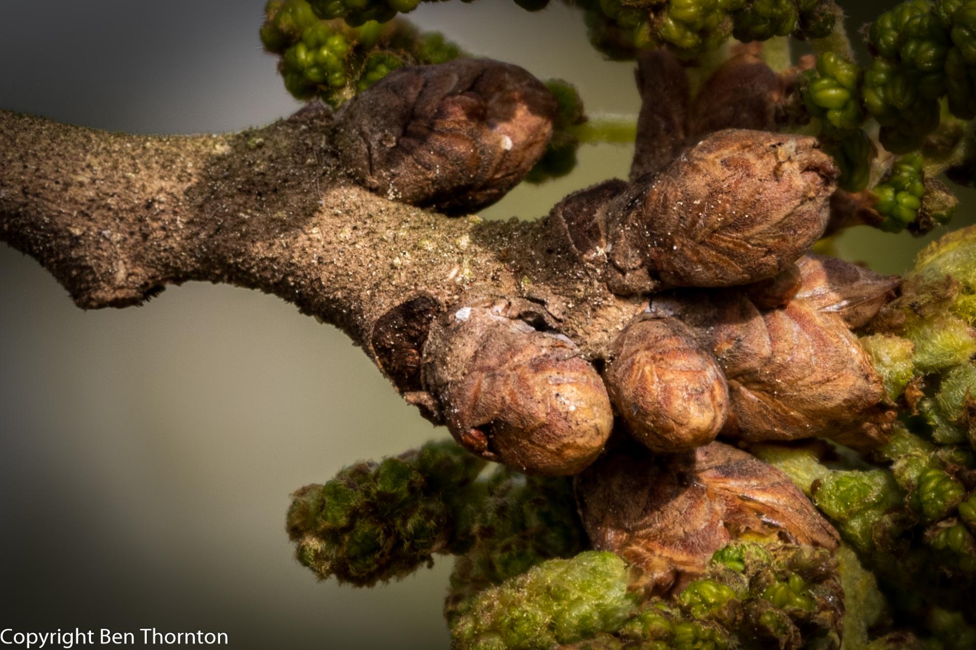 Q. stellata has the ability to survive fires by having thicker bark. It is useful for fire surveys where the tree rings are used to get a fire history of an area. A tree ring survey of 36 trees in Illinois provided a 226-year tree ring record that indicated that many Q. stellata persisted through annual fire return intervals of 1.44 fires/year for over 100 years.[11]
