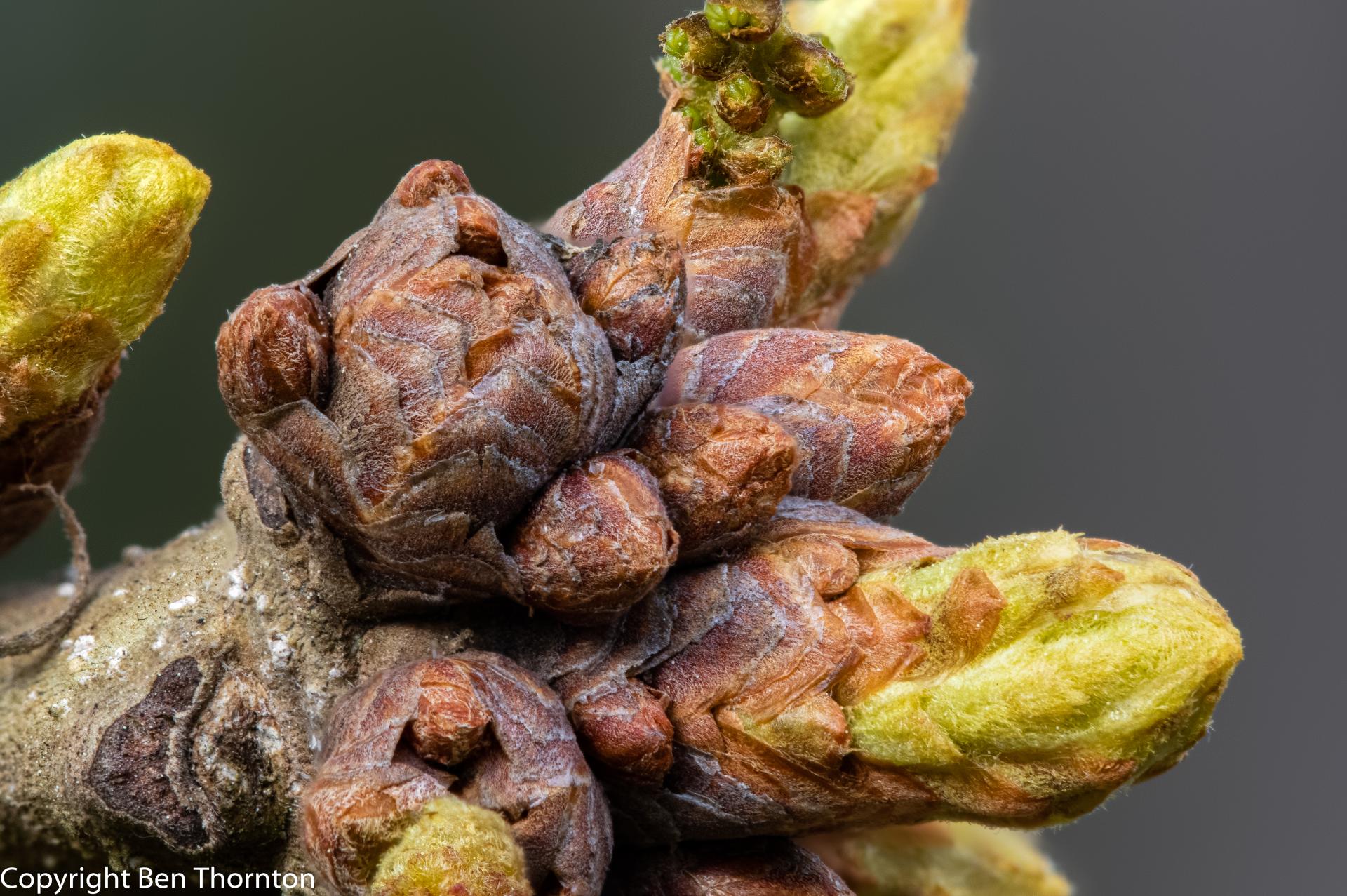 Both Quercus stellata and Q. alba are in a section of Quercus called the white oaks.[8] In the white oak section, Q. stellata is a sister taxon with Q. alba.[9] Q. stellata is sold and distributed as white oak. One identifiable difference between the two trees is that Q. stellata is 'hairy' on the underside of the leaf.[10]
