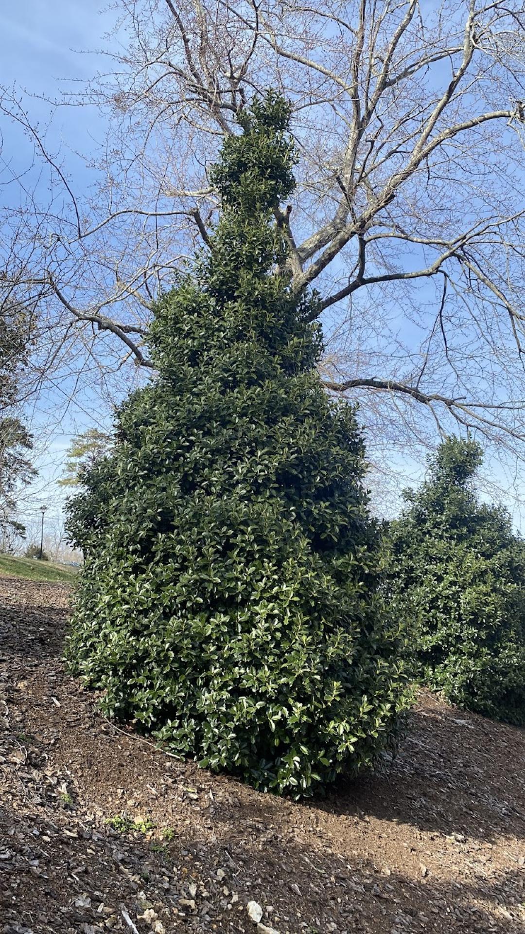 'Magland', commonly sold under the trade name of OAKLAND, was discovered by Jack Mitchell Magee in 1994 as a naturally occurring branch sport of Ilex`Conaf` at Evergreen Nursery in Poplarville, Mississippi. It is a dense, evergreen shrub with an upright, pyramidal growth habit. It has distinctive oak leaf-shaped leaves that have 3 to 5 pairs of prominent spines. Small, creamy yellow/white, slightly fragrant flowers bloom in clusters from the leaf axils in spring (March to May). The flowers are perfect (having male and female parts) and can both self-fertilize and pollinate other hollies. The flowers mature into attractive orange-red fruit that persists into the winter. 'Magland' grows 12 to 20 ft. tall and 8 to 15 ft. wide. United States Plant Patent PP#14,417 issued December 23, 2003.