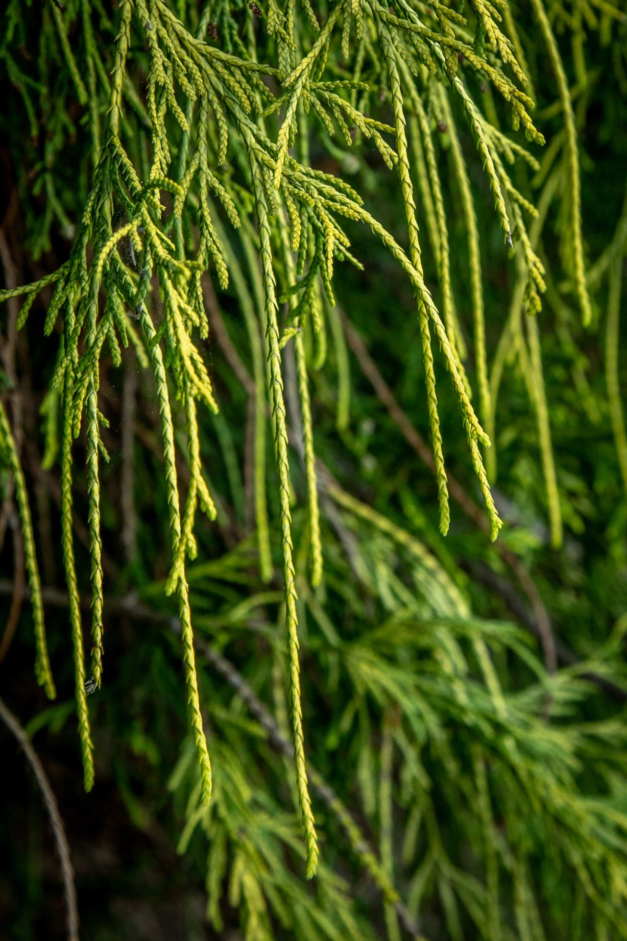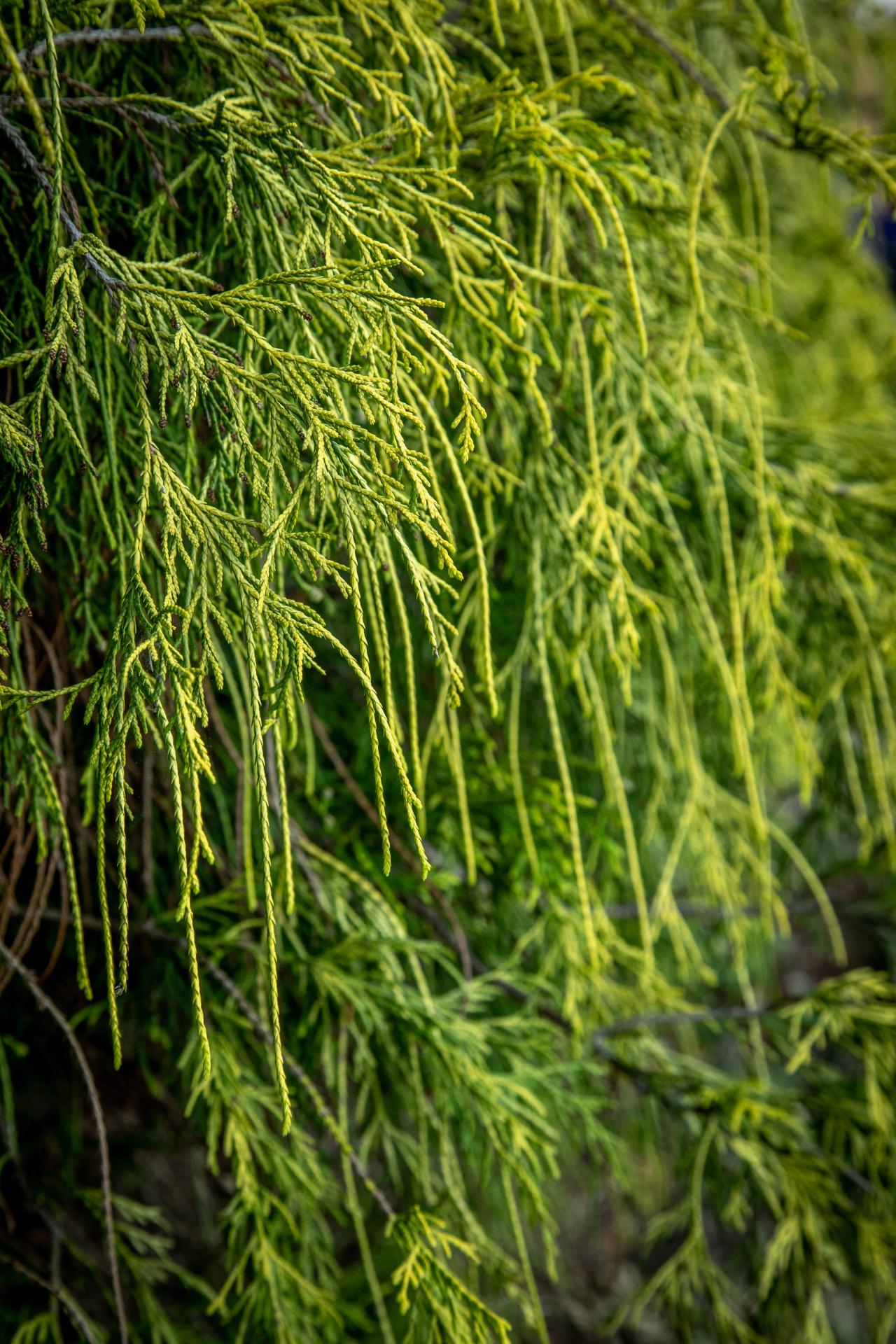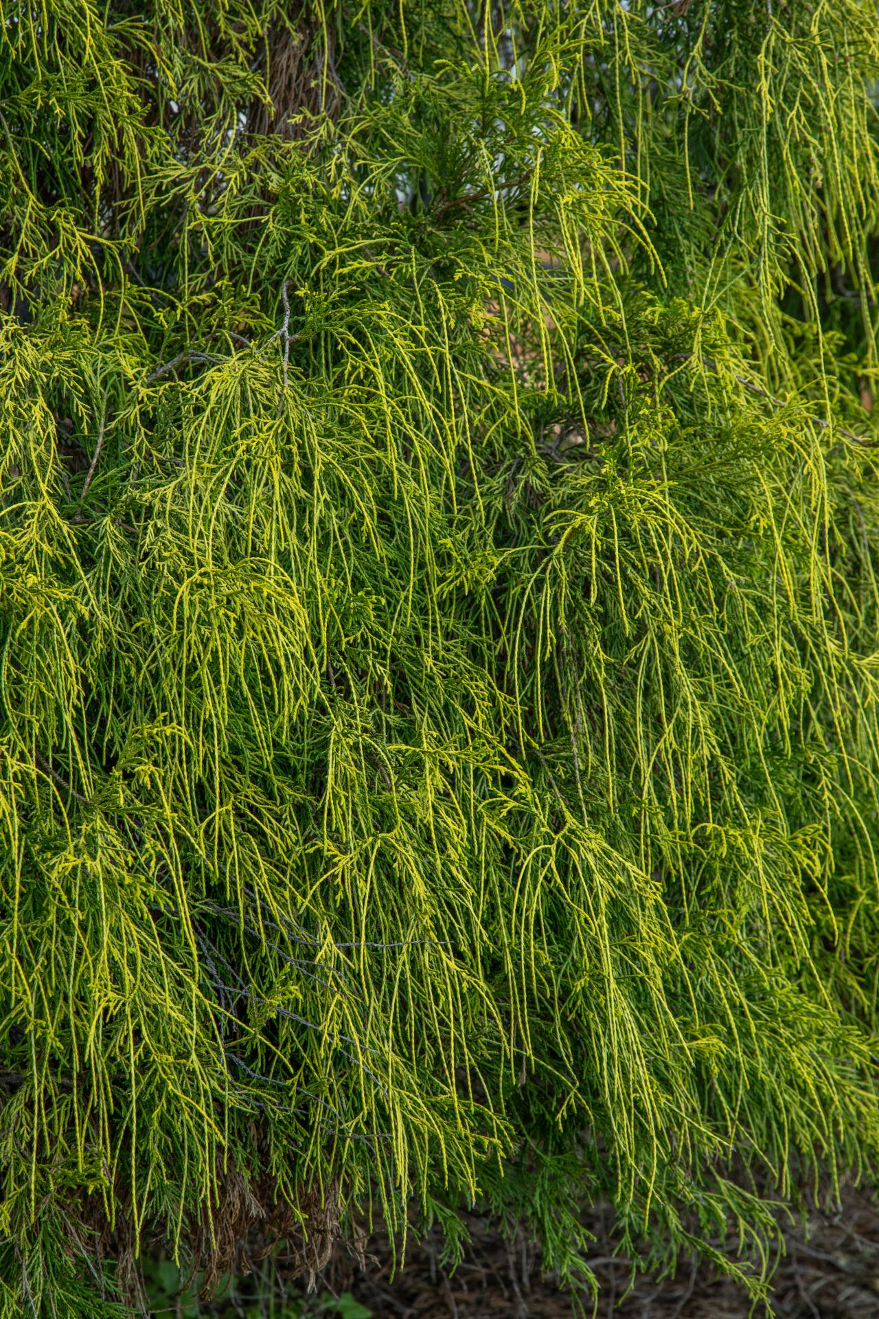 The foliage is thread-like and golden yellow on weeping branches. Plant the golden thread-leaf Sawara false-cypress in any moist, well-drained soil in full sun to partial shade. Full sun gives the best color, but the plant can experience sun-scald.