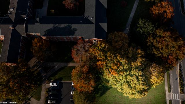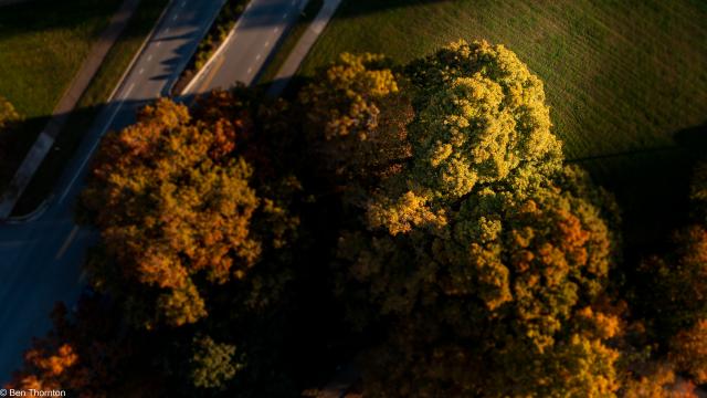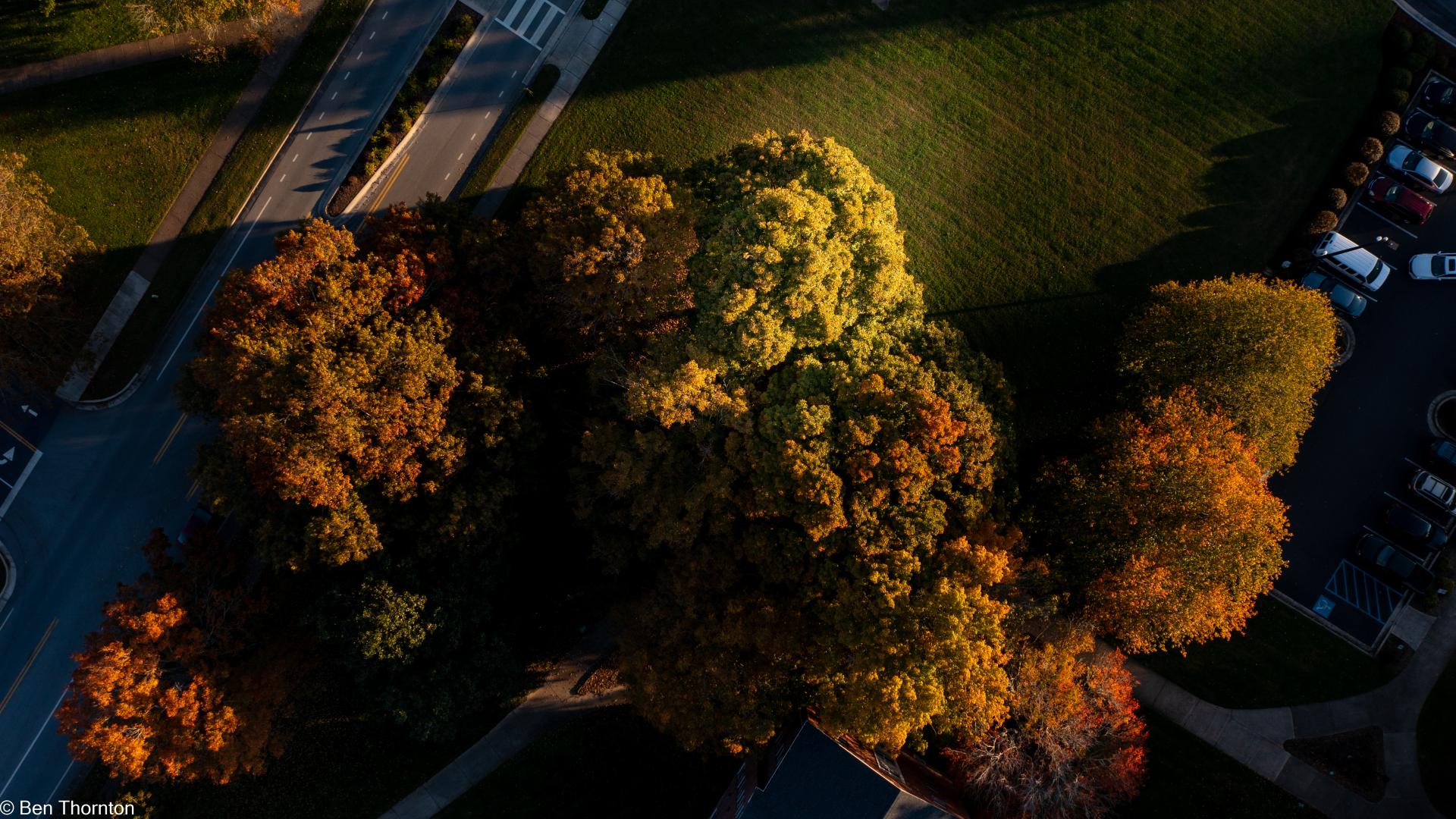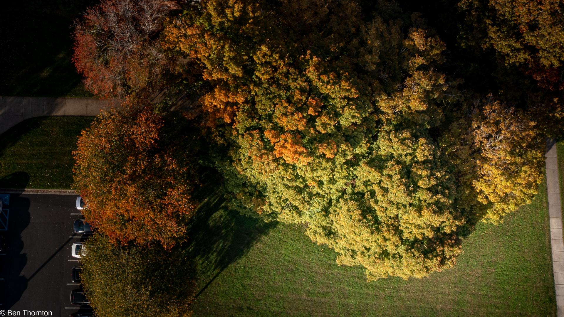 The LEAVES are deciduous, up to 20 cm (7.9 in) long and wide,[8] palmate, with five lobes and borne in opposite pairs. The basal lobes are relatively small, while the upper lobes are larger and deeply notched. In contrast with the angular notching of the SILVER MAPLE, however, the notches tend to be rounded at their interior. The fall color is often spectacular, ranging from bright yellow on some trees through orange to fluorescent red-orange on others. Sugar maples also have a tendency to color unevenly in fall. In some trees, all colors above can be seen at the same time. They also share a tendency with RED MAPLES for certain parts of a mature tree to change color weeks ahead of or behind the remainder of the tree. The leaf buds are pointy and brown-colored. The recent year's growth twigs are green, and turn dark brown.[CITATION NEEDED]