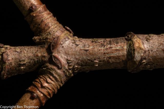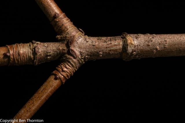 The sugar maple can be confused with the NORWAY MAPLE, which is not native to America but is commonly planted in cities and suburbs, and they are not closely related within the genus. The sugar maple is most easily identified by clear sap in the leaf PETIOLE (the Norway maple has white sap), brown, sharp-tipped buds (the Norway maple has blunt, green or reddish-purple buds), and shaggy bark on older trees (the Norway maple bark has small grooves). Also, the leaf lobes of the sugar maple have a more triangular shape, in contrast to the squarish lobes of the Norway maple.[12][13]