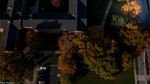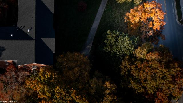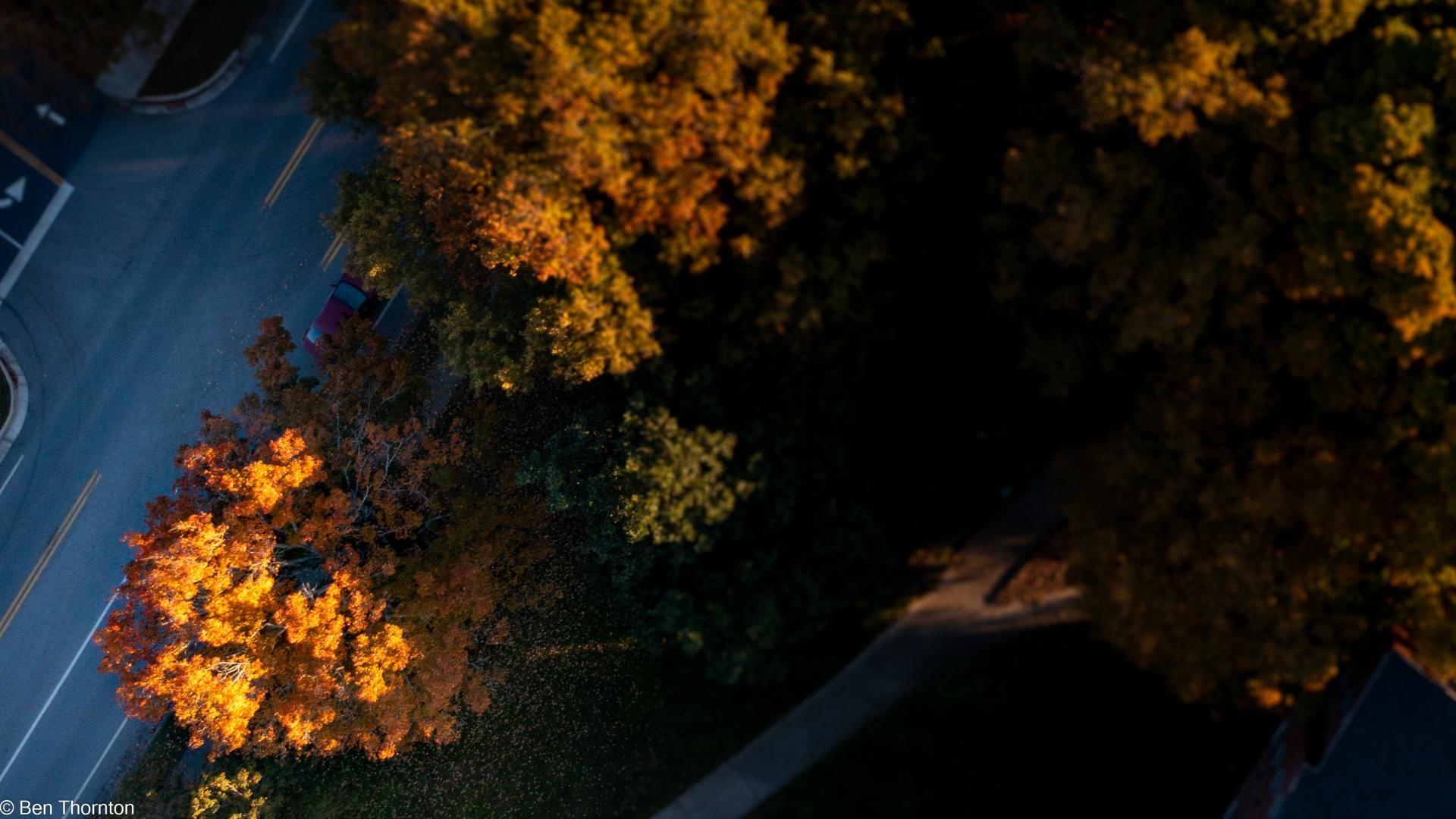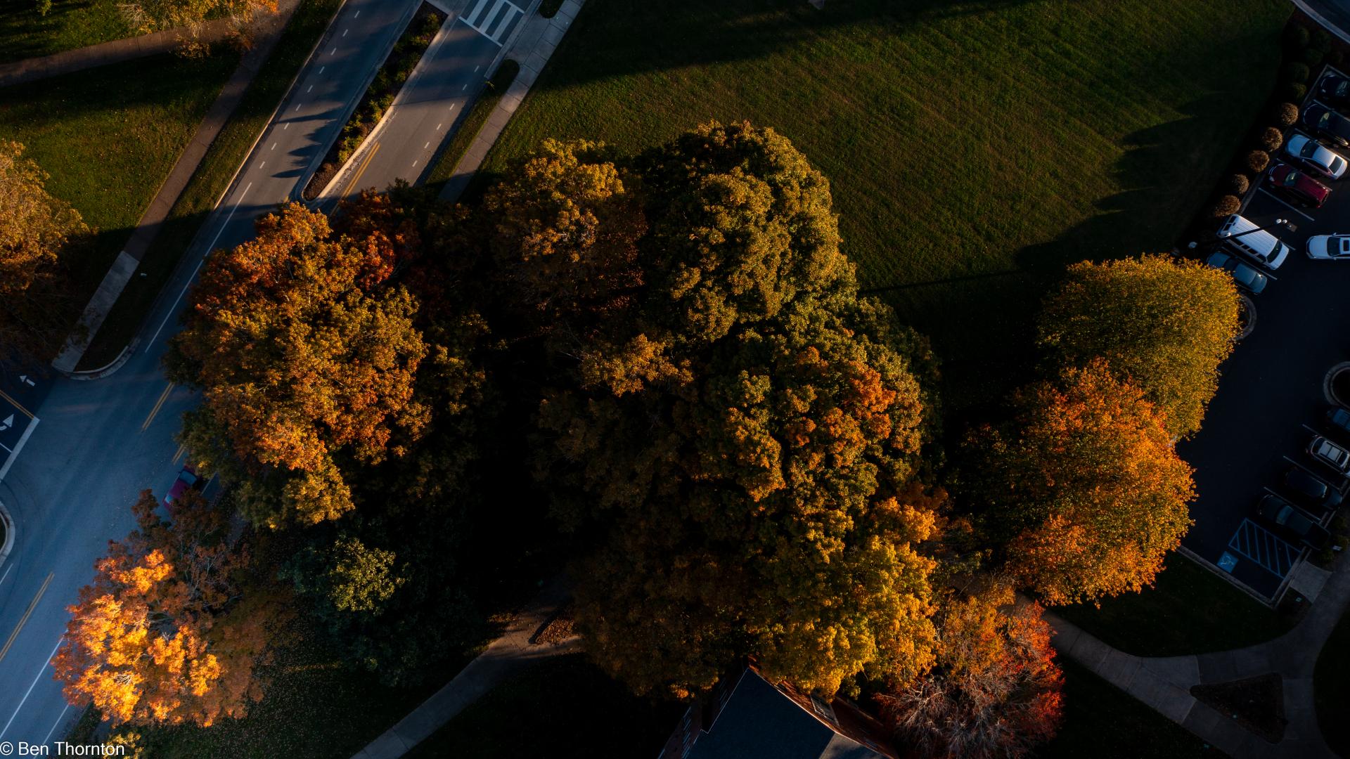 The LEAVES are deciduous, up to 20 cm (7.9 in) long and wide,[8] palmate, with five lobes and borne in opposite pairs. The basal lobes are relatively small, while the upper lobes are larger and deeply notched. In contrast with the angular notching of the SILVER MAPLE, however, the notches tend to be rounded at their interior. The fall color is often spectacular, ranging from bright yellow on some trees through orange to fluorescent red-orange on others. Sugar maples also have a tendency to color unevenly in fall. In some trees, all colors above can be seen at the same time. They also share a tendency with RED MAPLES for certain parts of a mature tree to change color weeks ahead of or behind the remainder of the tree. The leaf buds are pointy and brown-colored. The recent year's growth twigs are green, and turn dark brown.[CITATION NEEDED]