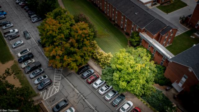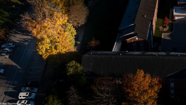 The LEAVES are deciduous, up to 20 cm (7.9 in) long and wide,[8] palmate, with five lobes and borne in opposite pairs. The basal lobes are relatively small, while the upper lobes are larger and deeply notched. In contrast with the angular notching of the SILVER MAPLE, however, the notches tend to be rounded at their interior. The fall color is often spectacular, ranging from bright yellow on some trees through orange to fluorescent red-orange on others. Sugar maples also have a tendency to color unevenly in fall. In some trees, all colors above can be seen at the same time. They also share a tendency with RED MAPLES for certain parts of a mature tree to change color weeks ahead of or behind the remainder of the tree. The leaf buds are pointy and brown-colored. The recent year's growth twigs are green, and turn dark brown.[CITATION NEEDED]