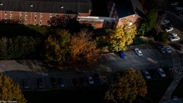 The LEAVES are deciduous, up to 20 cm (7.9 in) long and wide,[8] palmate, with five lobes and borne in opposite pairs. The basal lobes are relatively small, while the upper lobes are larger and deeply notched. In contrast with the angular notching of the SILVER MAPLE, however, the notches tend to be rounded at their interior. The fall color is often spectacular, ranging from bright yellow on some trees through orange to fluorescent red-orange on others. Sugar maples also have a tendency to color unevenly in fall. In some trees, all colors above can be seen at the same time. They also share a tendency with RED MAPLES for certain parts of a mature tree to change color weeks ahead of or behind the remainder of the tree. The leaf buds are pointy and brown-colored. The recent year's growth twigs are green, and turn dark brown.[CITATION NEEDED]
