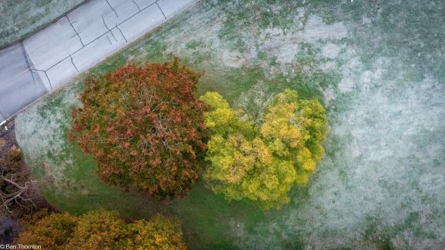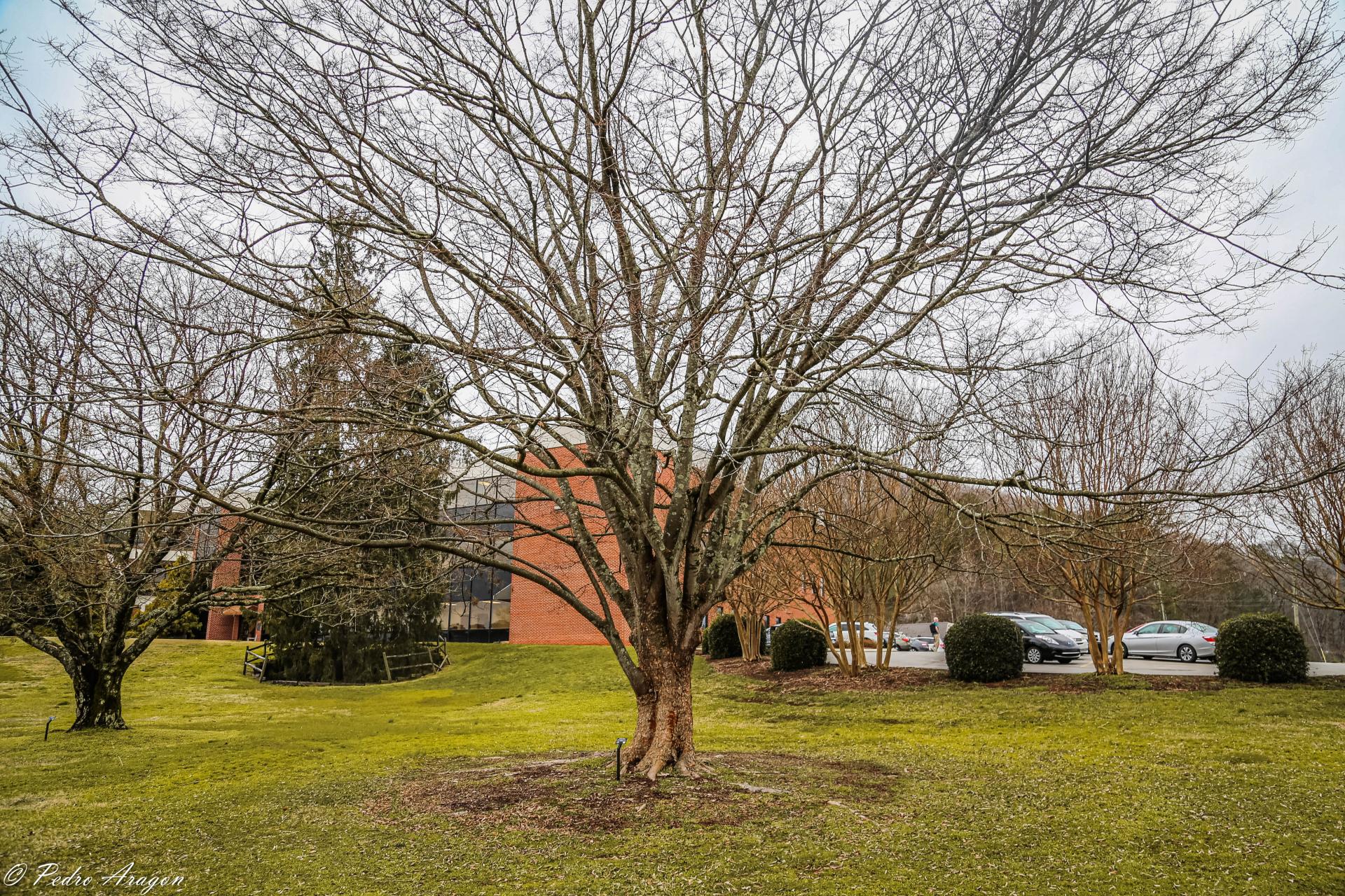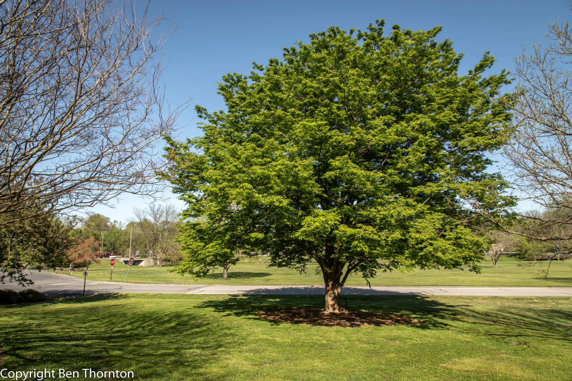 Zelkova serrata is a medium-sized deciduous tree usually growing to 30 m (98 ft) tall. It is characterized by a short trunk dividing into many upright and erect spreading stems forming a broad, round-topped head. The tree grows rapidly when young though the growth rate slows to medium upon middle age and maturity.[5]