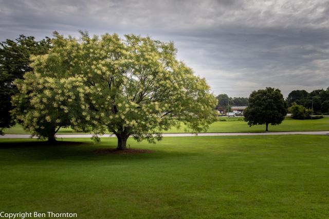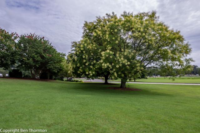 Styphnolobium japonicum is native to China; despite the name, it was introduced in Japan. It is a popular ornamental tree in Europe, North America and South Africa, grown for its white flowers, borne in late summer after most other flowering trees have long finished flowering. It grows to 10–20 m tall with an equal spread, and produces a fine, dark brown timber.[citation needed]