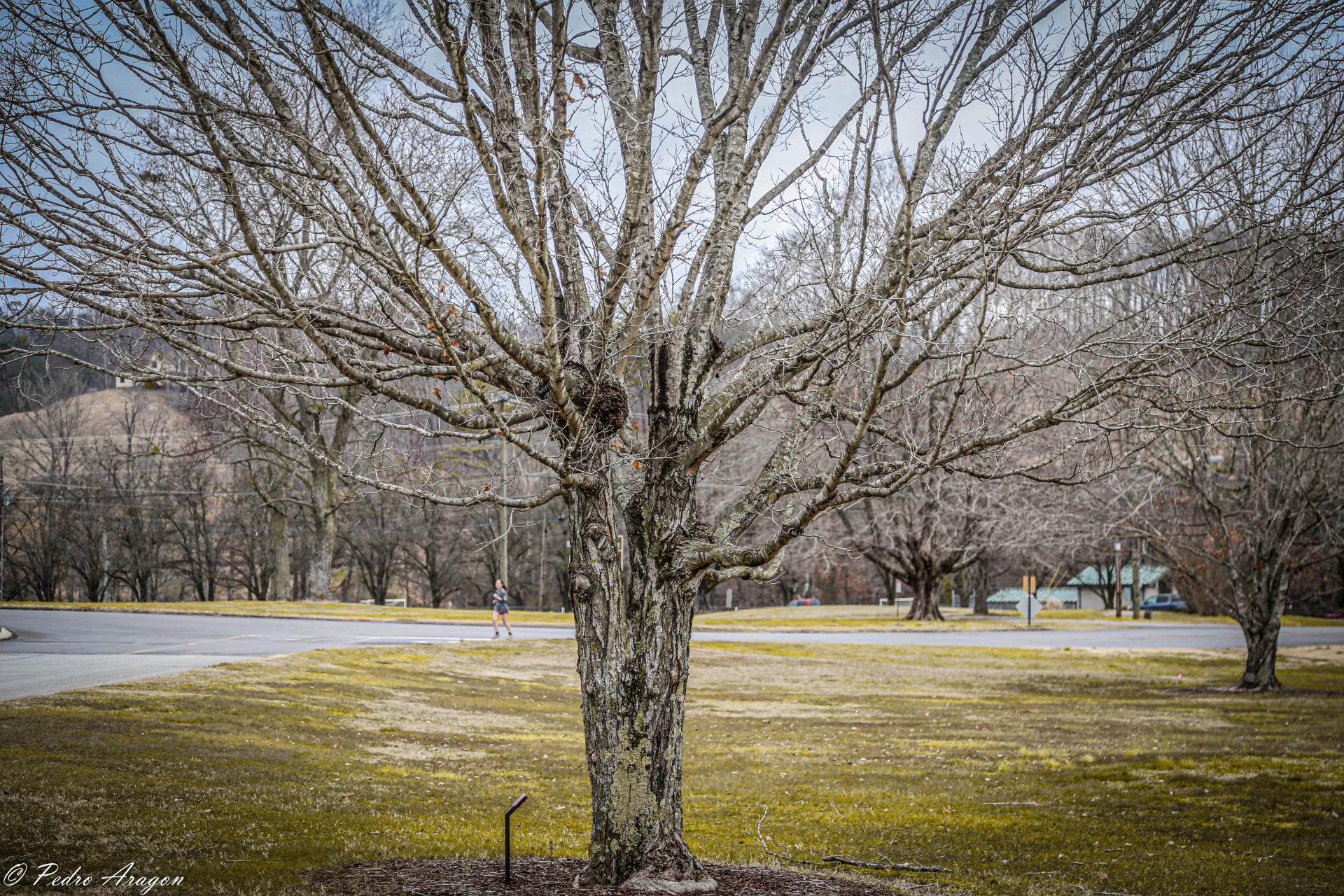 The TWIGS of the red maple are reddish in color and somewhat shiny with small LENTICELS. Dwarf shoots are present on many branches. The BUDS are usually blunt and greenish to reddish in color, generally with several loose scales. The lateral buds are slightly stalked, and in addition, collateral buds may be present, as well. The buds form in fall and winter and are often visible from a distance due to their large size and reddish tint. The leaf scars on the twig are V-shaped and contain three bundle scars.[6]